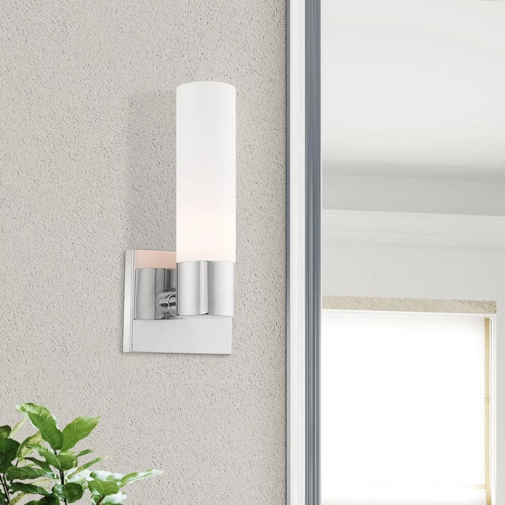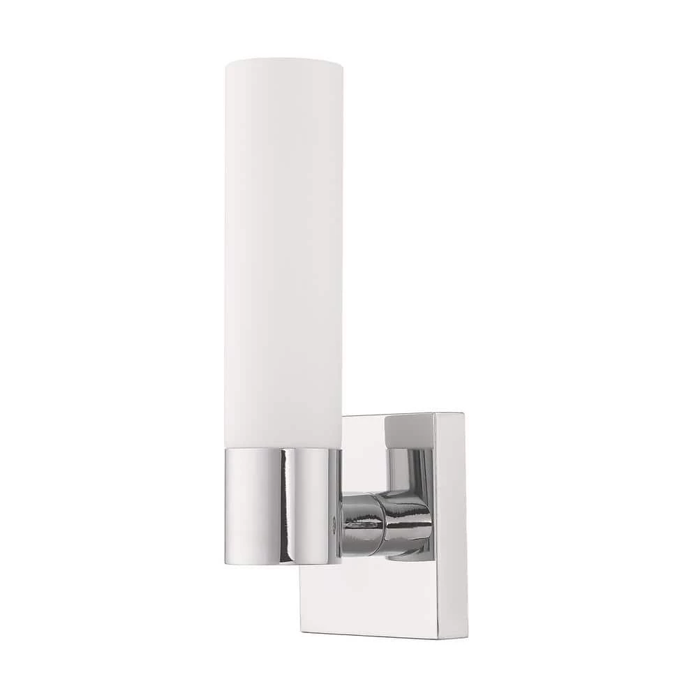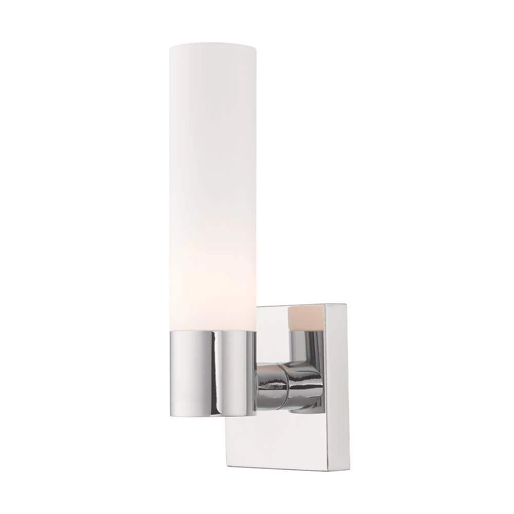 Livex Lighting is well known for quality, style and value. With the sleek contemporary design, the Aero bath bar casts a soft, flattering light as the tubular etched opal glass diffuses the light of one lamp. Available in brilliant polished chrome or a subdued brushed nickel. This well-rounded fixture is sure to satisfy your lighting needs.