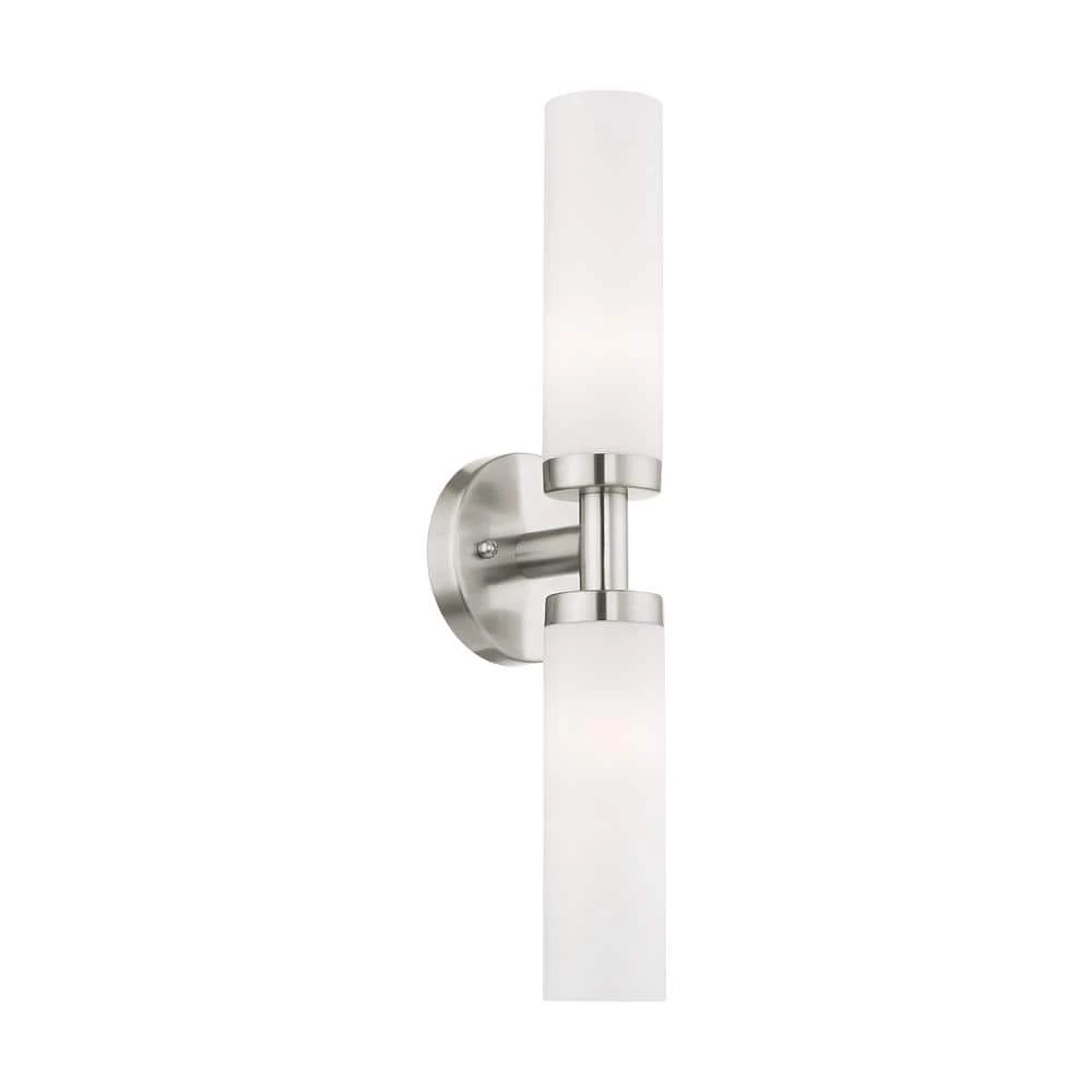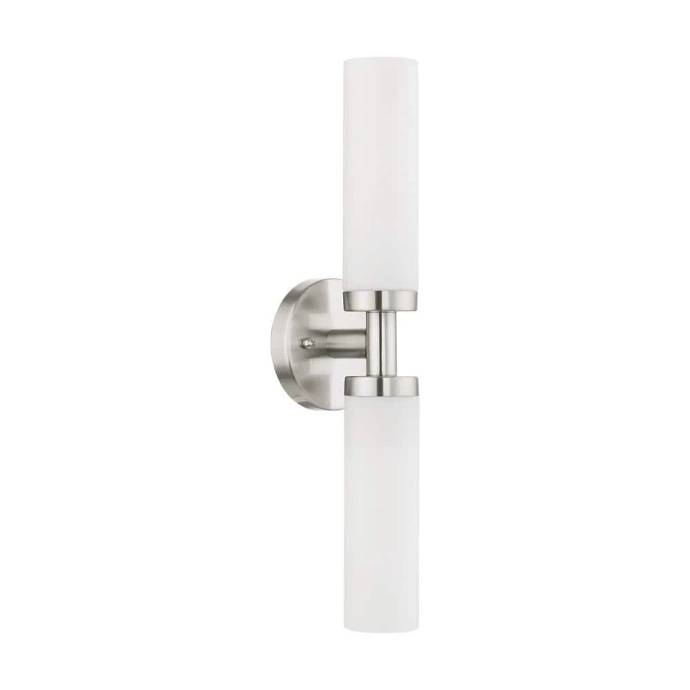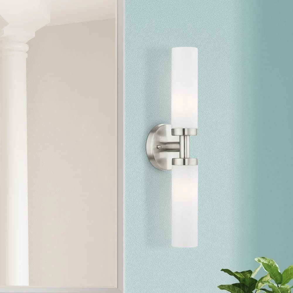Livex Lighting is well known for quality, style and value. With the sleek contemporary design, the Aero bath bar casts a soft, flattering light which can be mounted horizontal or vertical. The tubular etched opal glass diffuses the light of 2 lamps. Available in brilliant polished chrome or a subdued brushed nickel. This well-rounded fixture is sure to satisfy your lighting needs.