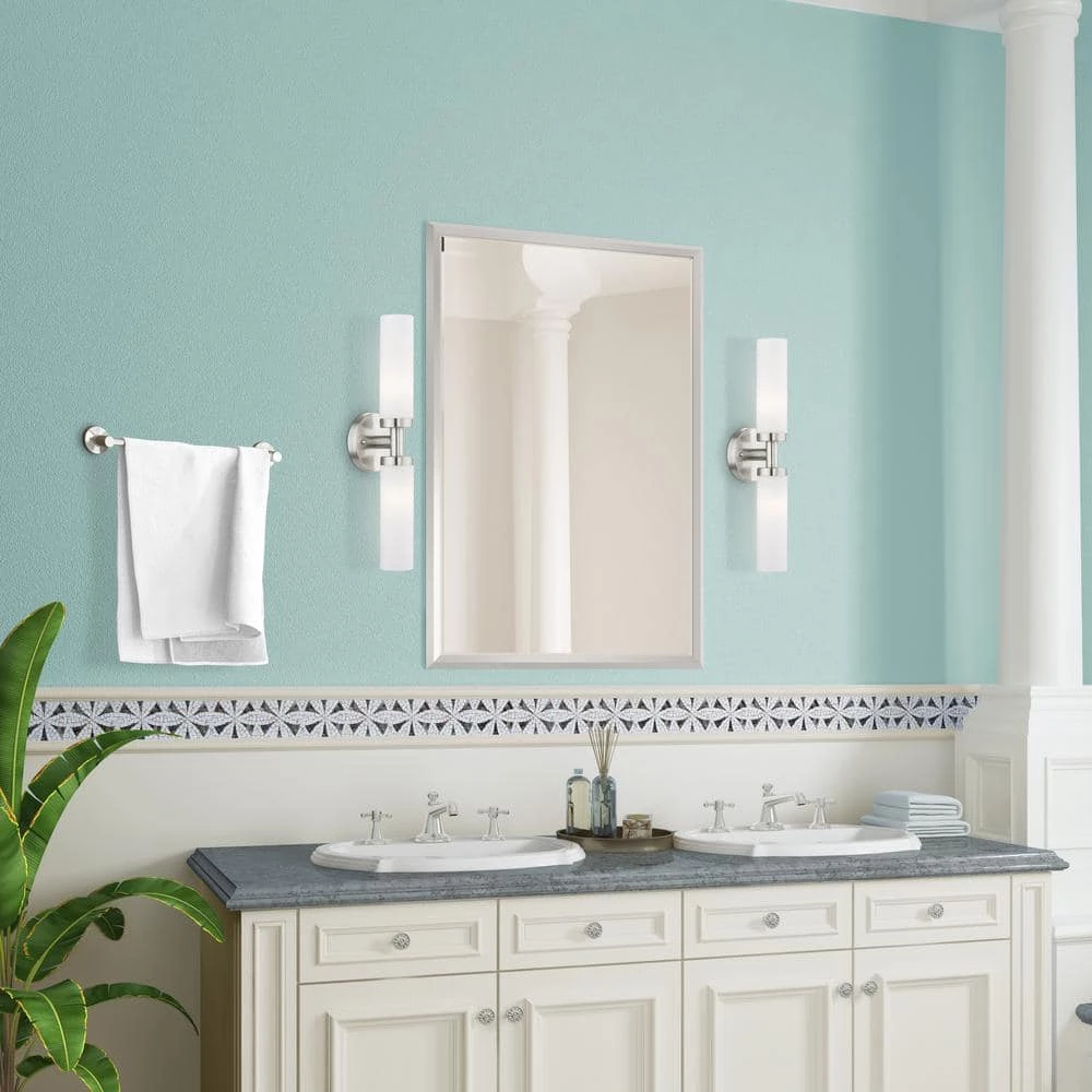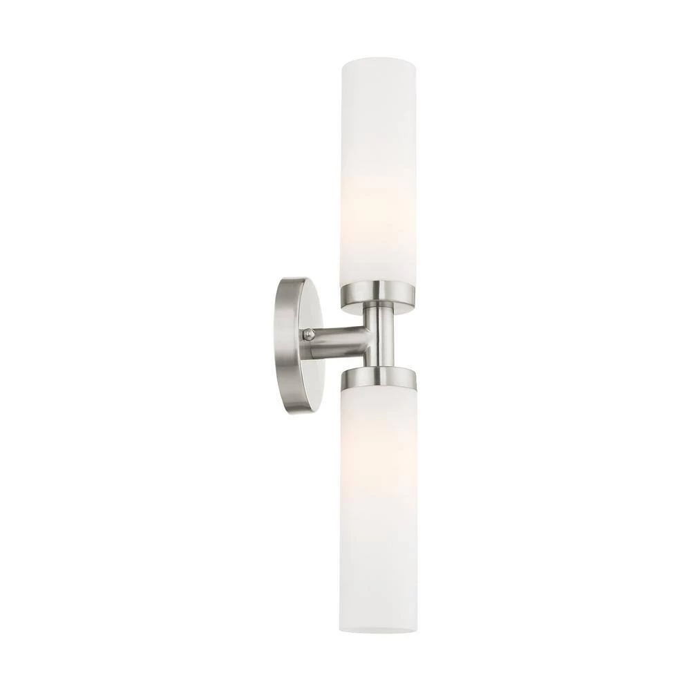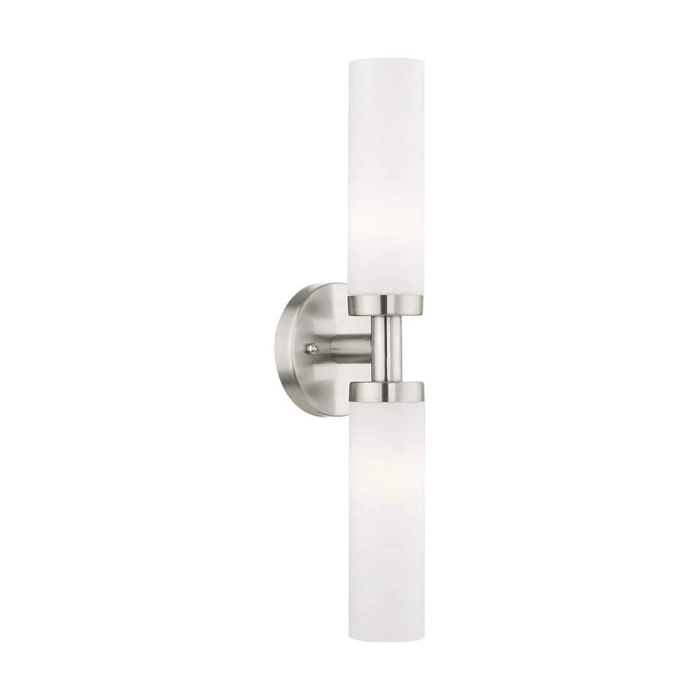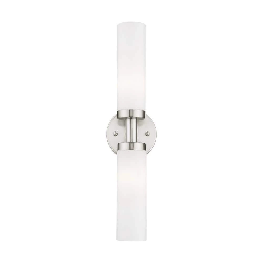 Livex Lighting is well known for quality, style and value. With the sleek contemporary design, the Aero bath bar casts a soft, flattering light which can be mounted horizontal or vertical. The tubular etched opal glass diffuses the light of 2 lamps. Available in brilliant polished chrome or a subdued brushed nickel. This well-rounded fixture is sure to satisfy your lighting needs.
