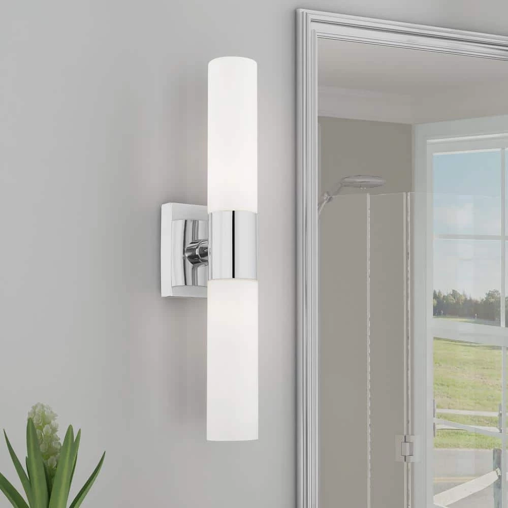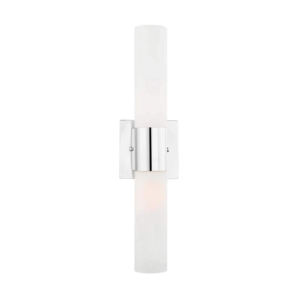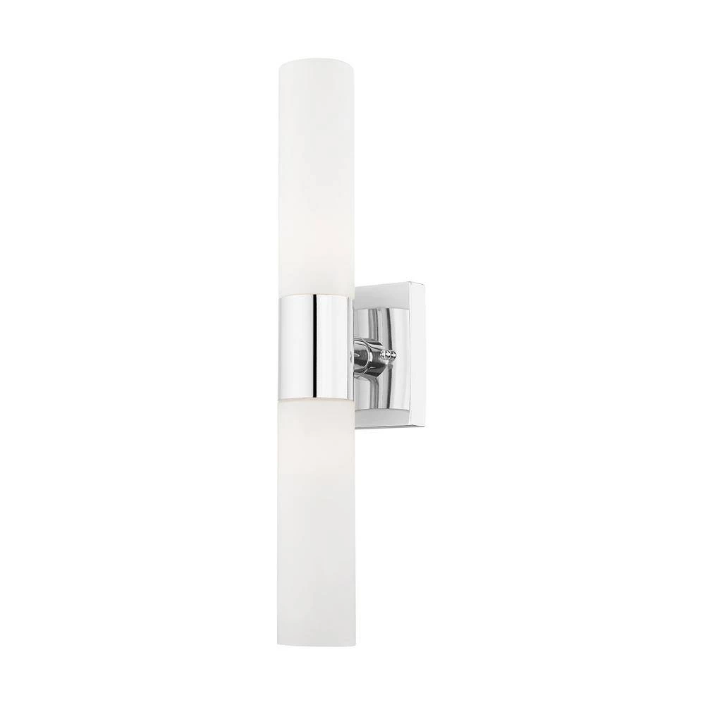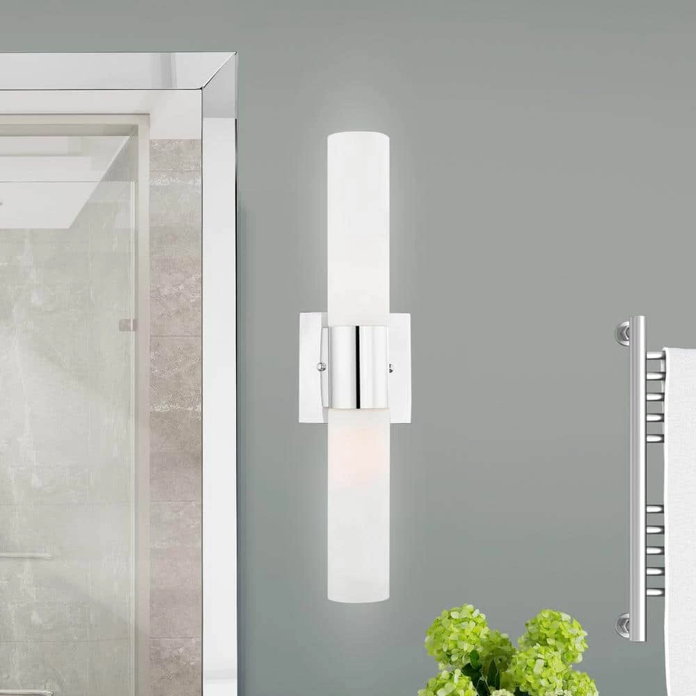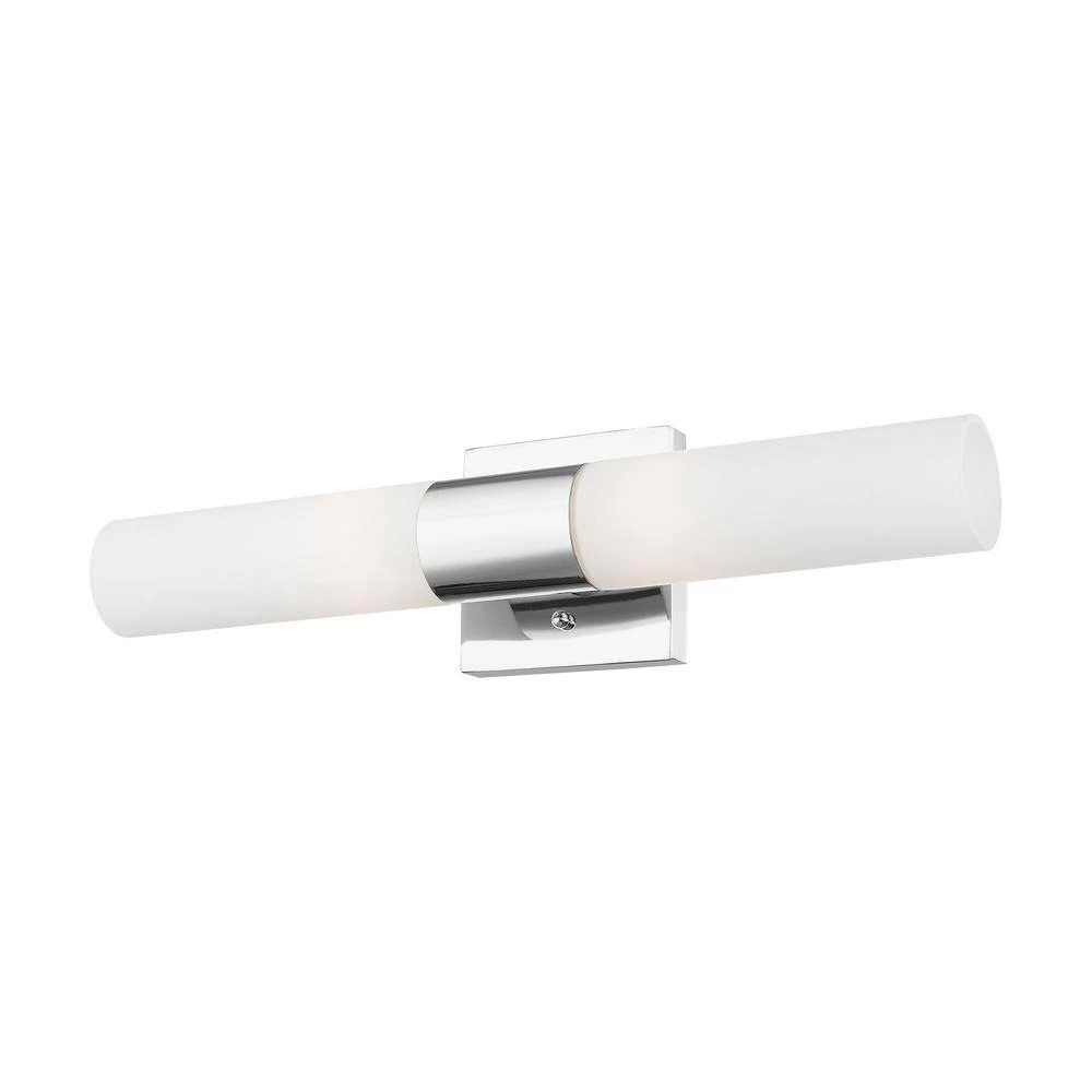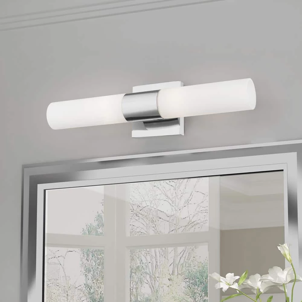 Livex Lighting is well known for quality, style and value. With the sleek contemporary design, the Aero bath bar casts a soft, flattering light which can be mounted horizontal or vertical. The tubular etched opal glass diffuses the light of 2 lamps. Available in brilliant polished chrome or a subdued brushed nickel. This well-rounded fixture is sure to satisfy your lighting needs.