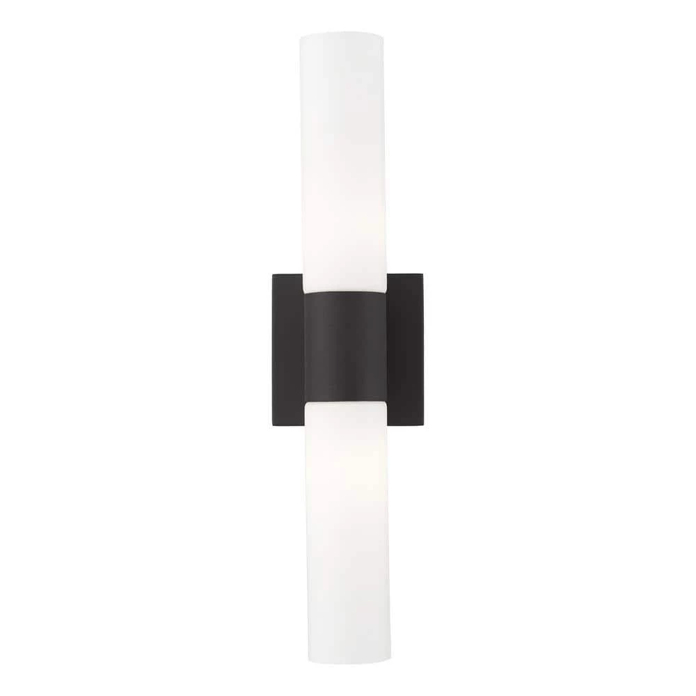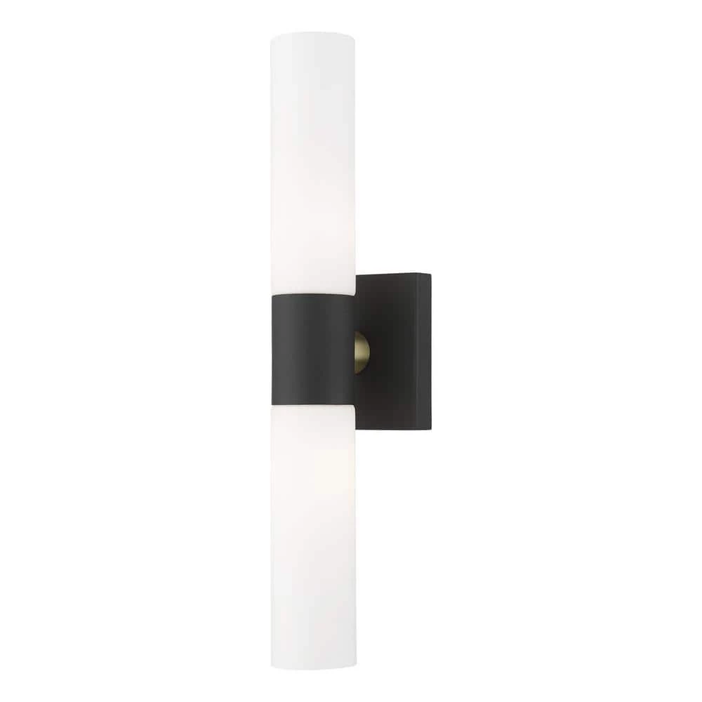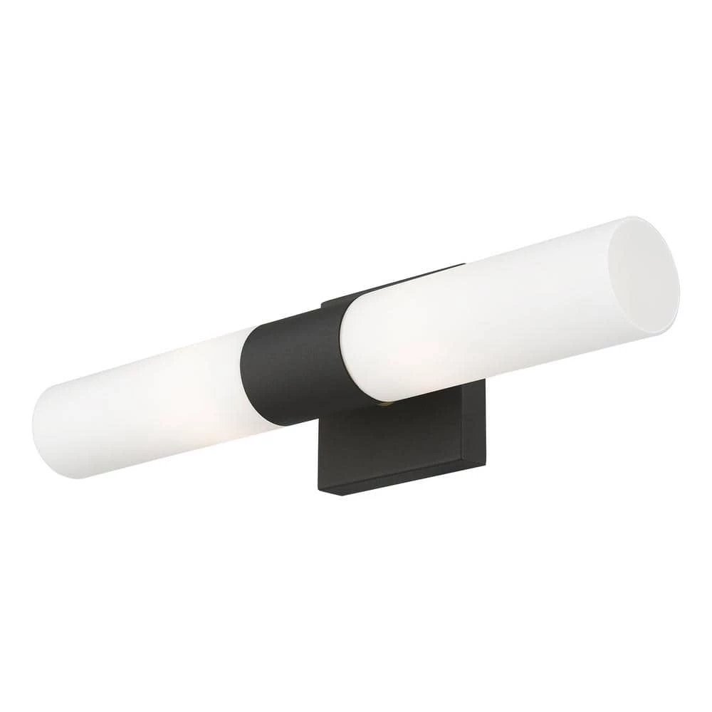 With the sleek contemporary design, the Aero bath bar casts a soft, flattering light which can be mounted horizontally or vertically. The tubular etched opal glass diffuses the light of 2 lamps. Available in antique brass, polished brass, polished chrome, satin brass, black chrome, brushed nickel, black, bronze, textured white or textured black.