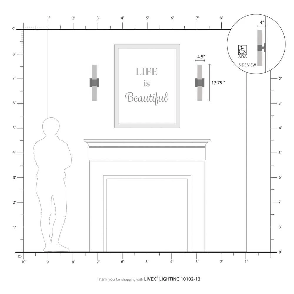 - Horizontal TTM 2.25 in. H, vertical TTM 9 in. H