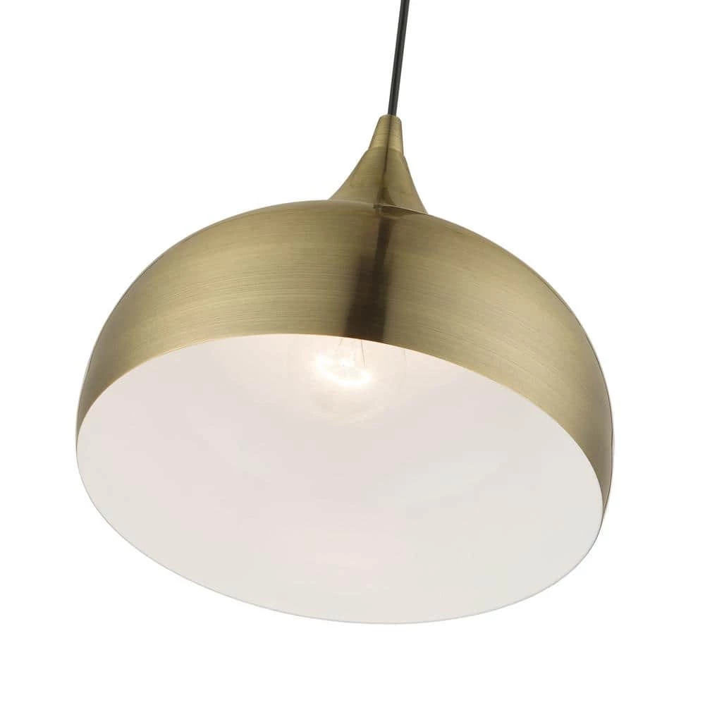 Livex Lighting is well known for quality, style and value. The modern, minimal Amador 1-light teardrop pendant features an antique brass finish shade with a shiny white finish inside. Antique brass finish accents complete the look. With the superb craftsmanship and affordable price this fixture is sure to tastefully indulge your extravagant side.