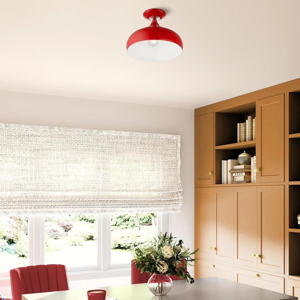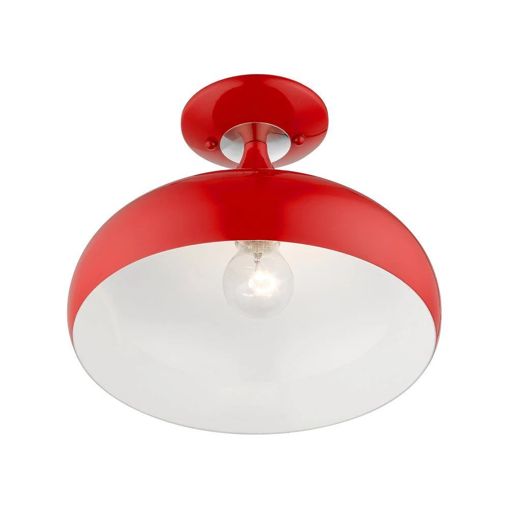 Livex Lighting is well known for quality, style and value. The modern, minimal Amador teardrop flush mount features a shiny red finish shade with a shiny white finish inside. Polished chrome finish accents complete the look. With the superb craftsmanship and affordable price this fixture is sure to tastefully indulge your extravagant side.