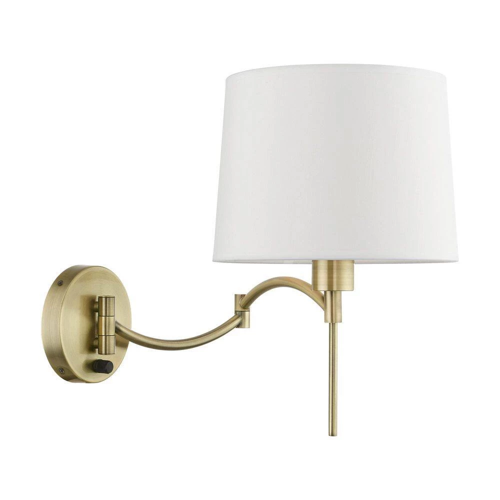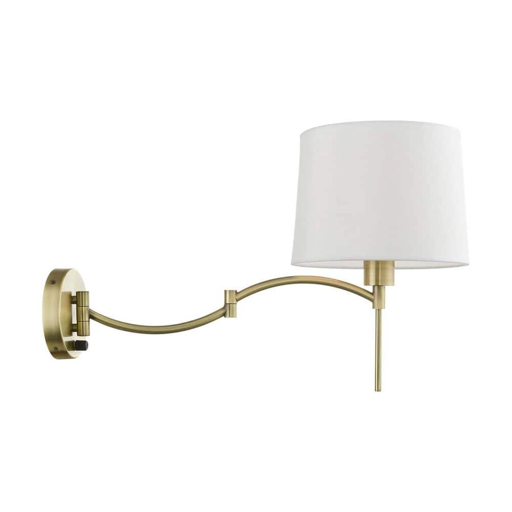 The easy combination of gentle curves and straight lines bring the perfect balance to this plug-in/hardwired swing arm wall lamp. In an antique brass finish with a hand crafted off white hardback shade, this transitional lamp is handsome and just right for bringing functional lighting style to any home. With the superb craftsmanship and affordable price this fixture is sure to tastefully indulge your extravagant side.