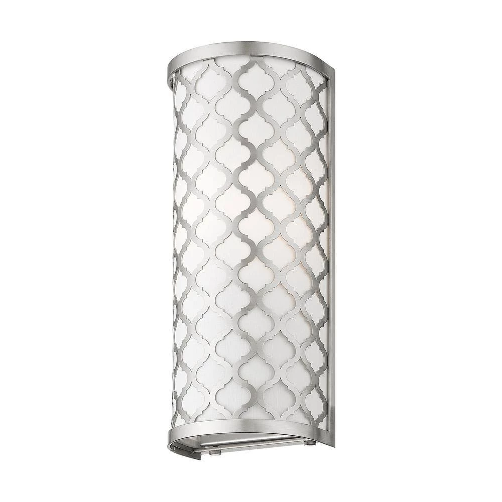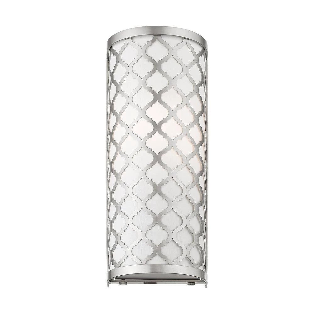 Livex Lighting is well known for quality, style and value. Our Arabesque one light wall sconce will add refined style and a hint of mystery to your decor. The off-white fabric hardback shade creates a warm illumination, while the light brings to life the intricate brushed nickel cutout pattern. This well-rounded fixture is sure to satisfy your lighting needs.