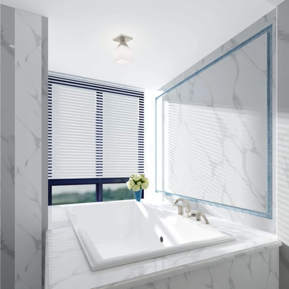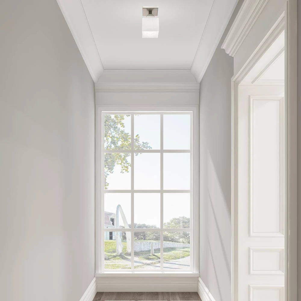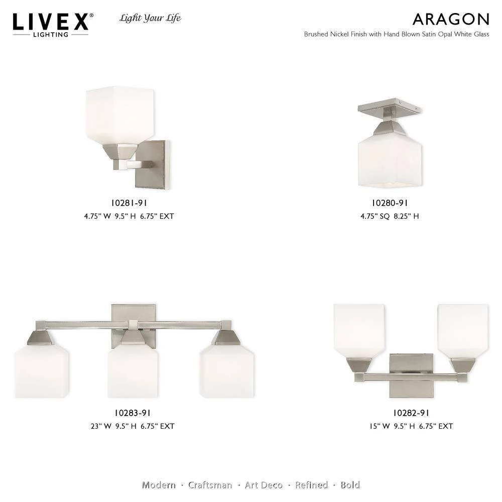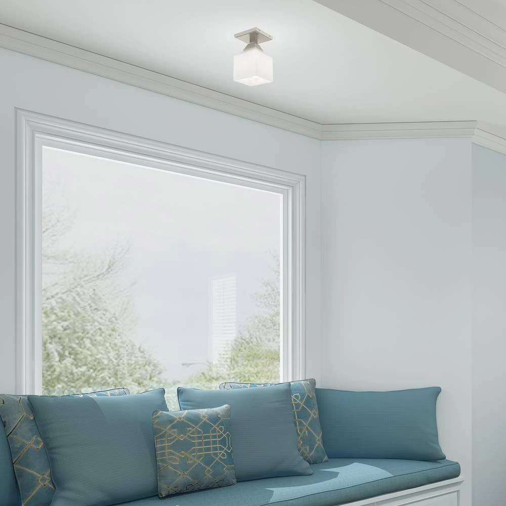 Livex Lighting is well known for quality, style and value. This ceiling mount light is sure to provide reliable illumination without sacrificing style. It features one satin opal white glass shade with an open bottom, exposing the bulb inside. A brushed nickel finish covers the canopy and accents the light. This well-rounded fixture is sure to satisfy your lighting needs.