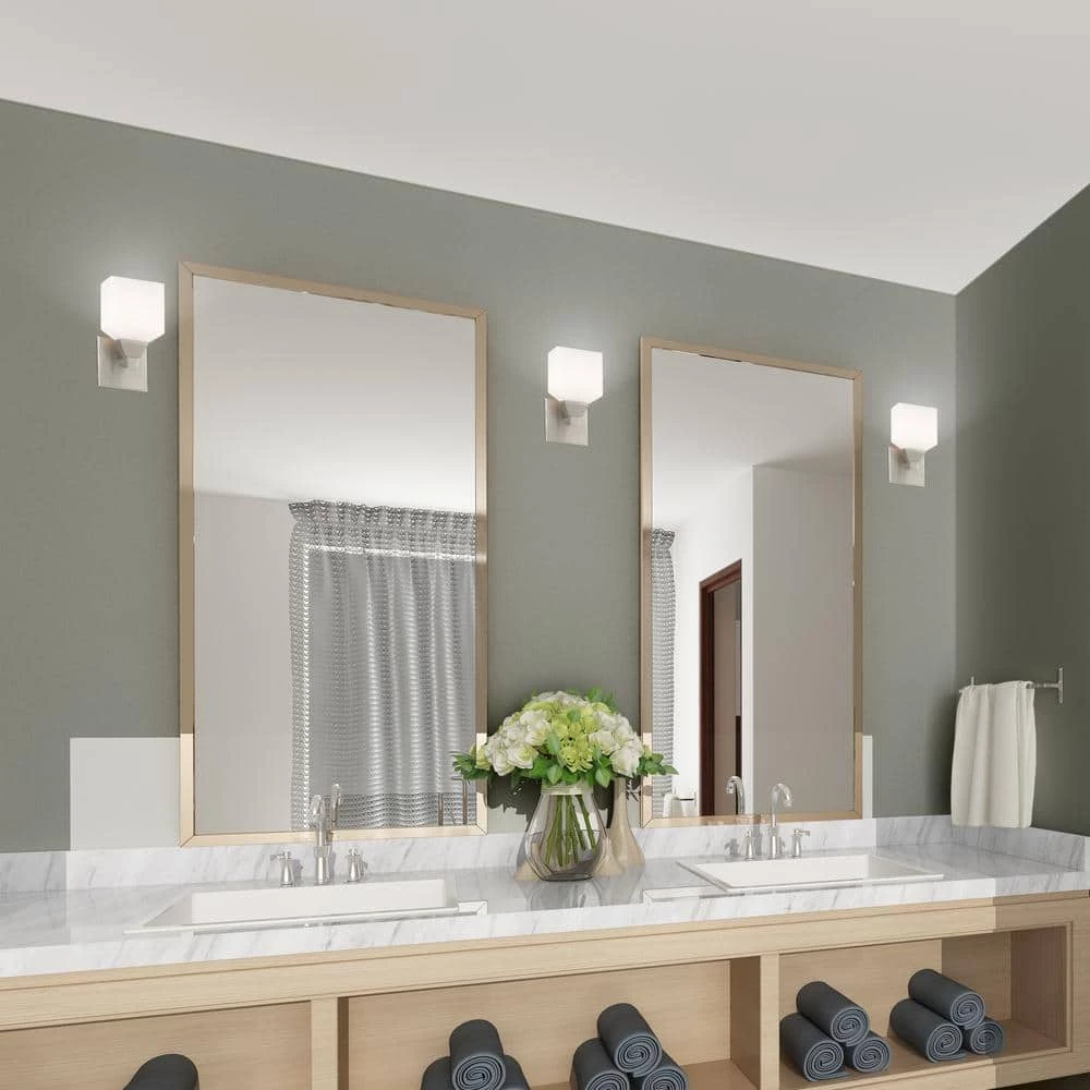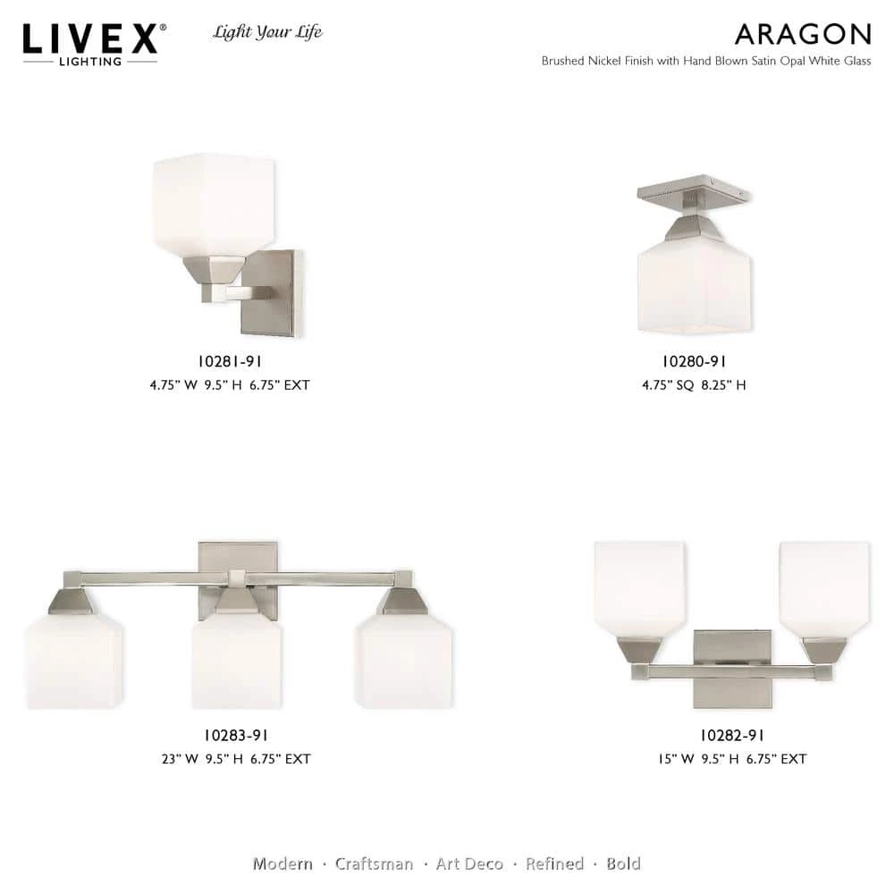 Livex Lighting is well known for quality, style and value. This bath vanity light is sure to provide reliable illumination without sacrificing style. It features one satin opal white glass shade with an open bottom, exposing the bulb inside. A brushed nickel finish covers the backplate and accents the light. This well-rounded fixture is sure to satisfy your lighting needs.