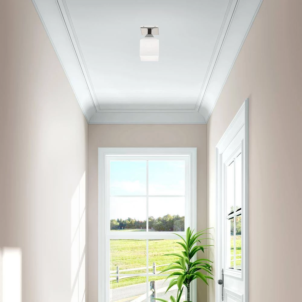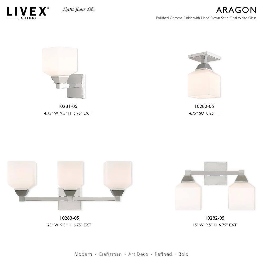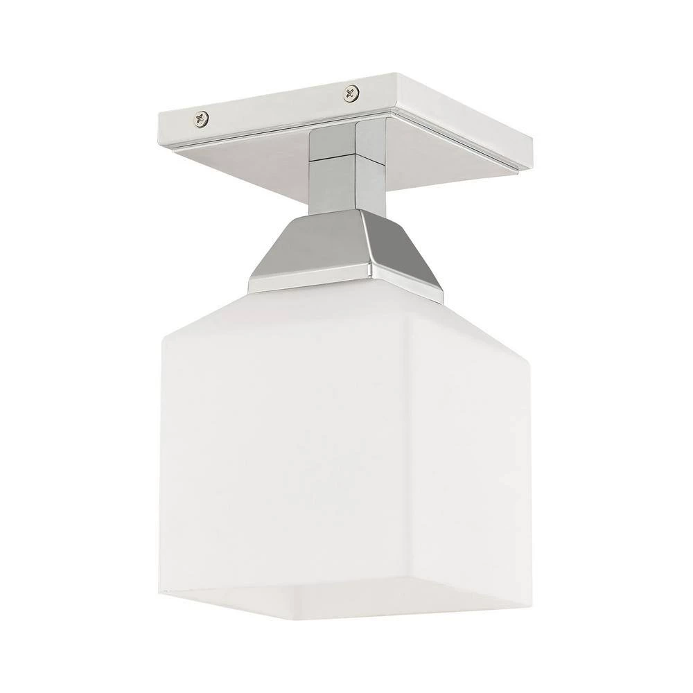 Livex Lighting is well known for quality, style and value. This ceiling mount light is sure to provide reliable illumination without sacrificing style. It features one satin opal white glass shade with an open bottom, exposing the bulb inside. A polished chrome finish covers the canopy and accents the light. This well-rounded fixture is sure to satisfy your lighting needs.