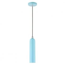 Livex Lighting is well known for quality, style and value. Ardmore is a high style chic mid-century modern classic collection embodying the elegant lifestyle of Scandinavian culture. The simple lines and a multitude of finishes create a well handcrafted handsome collection. This single-light shiny baby blue finish pendant is so versatile it will fit literally any place in your home; the bedroom, bathroom, kitchen countertop, dining room or office. This well-rounded fixture is sure to satisfy your lighting needs.