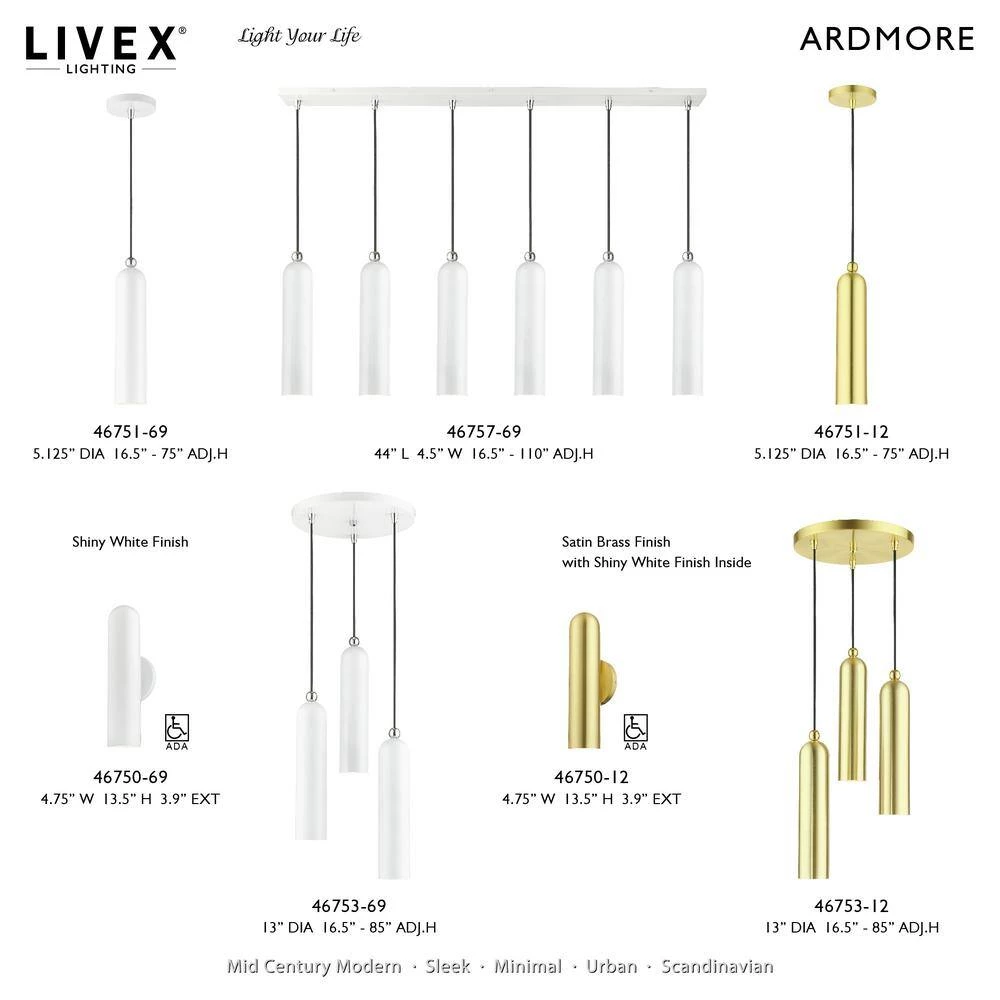 Livex Lighting is well known for quality, style and value. Ardmore is a high style chic mid-century modern classic collection embodying the elegant lifestyle of Scandinavian culture. The simple lines and a multitude of finishes create a well handcrafted handsome collection. This single-light white finish pendant is so versatile it will fit literally any place in your home; the bedroom, bathroom, kitchen countertop, dining room or office. This well-rounded fixture is sure to satisfy your lighting needs.