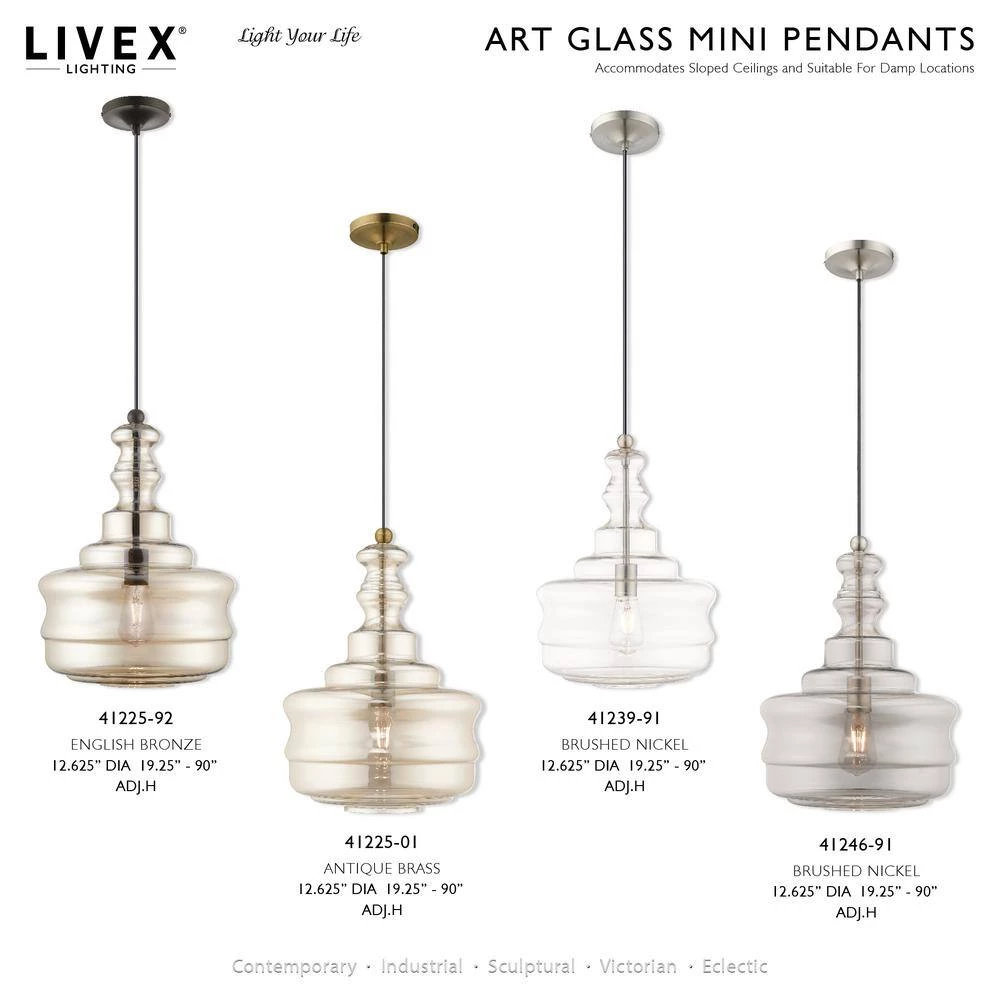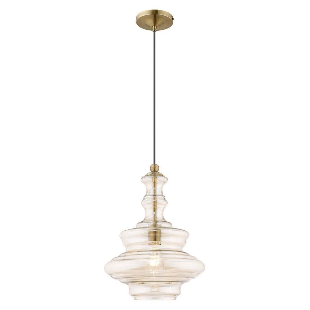 Livex Lighting is well known for quality, style and value. This art glass mini pendant is sure to add a throw-back flair to your living space. Made with hand-blown champagne glass and finished in antique brass, old school meets modern in this transitional solution. This well-rounded fixture is sure to satisfy your lighting needs.