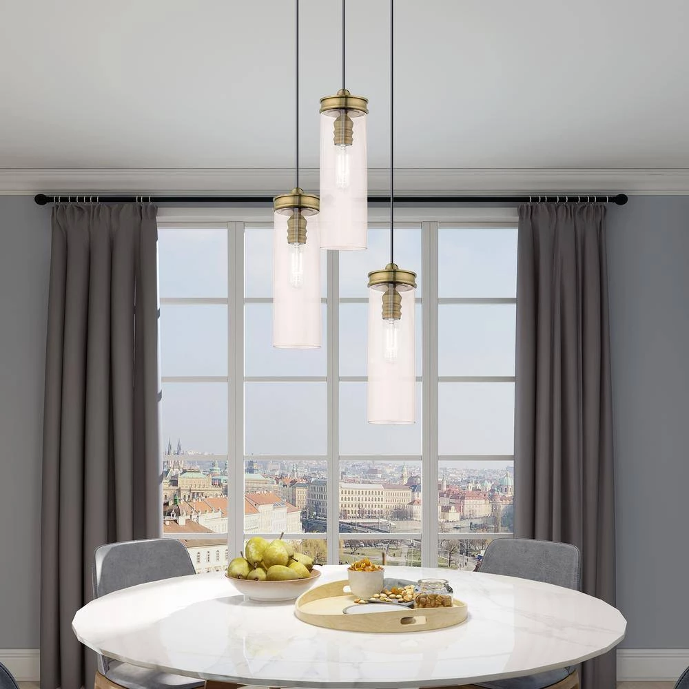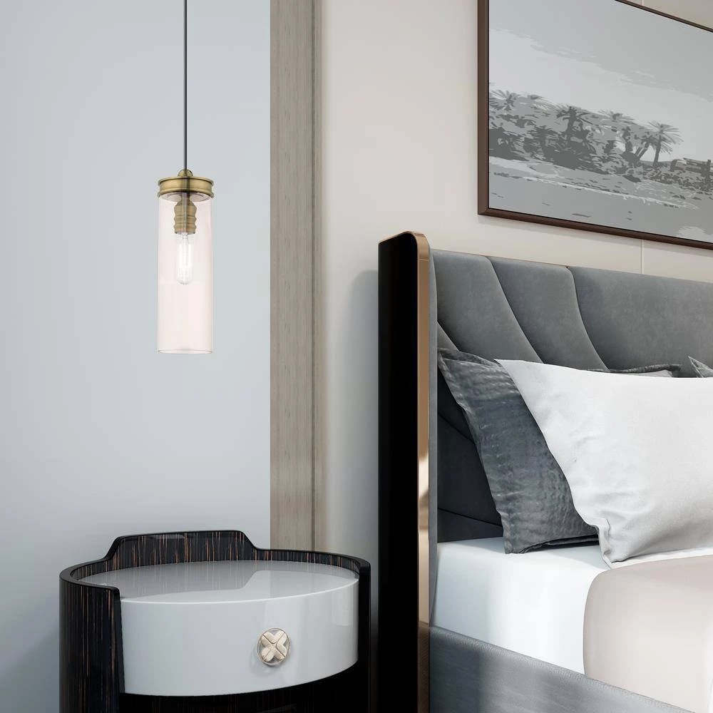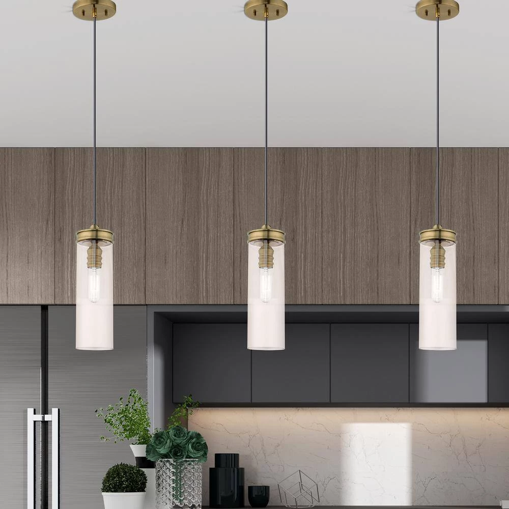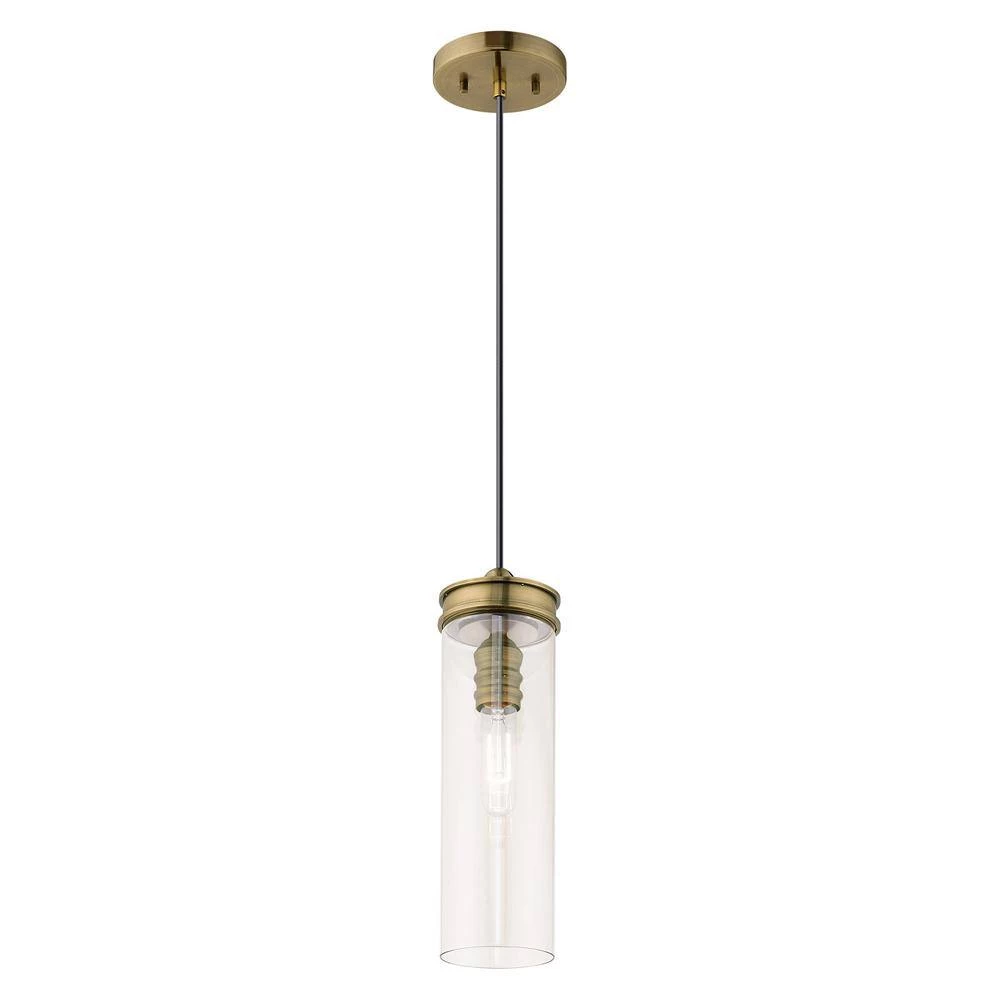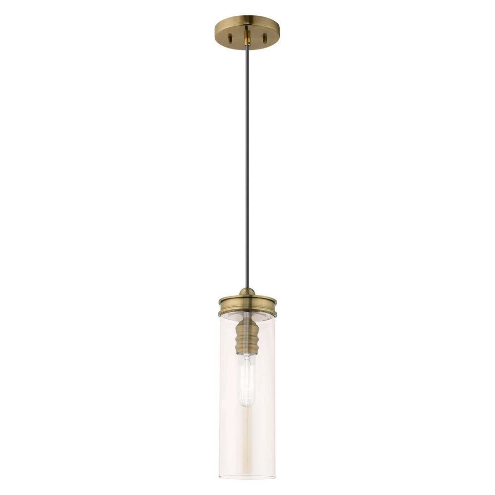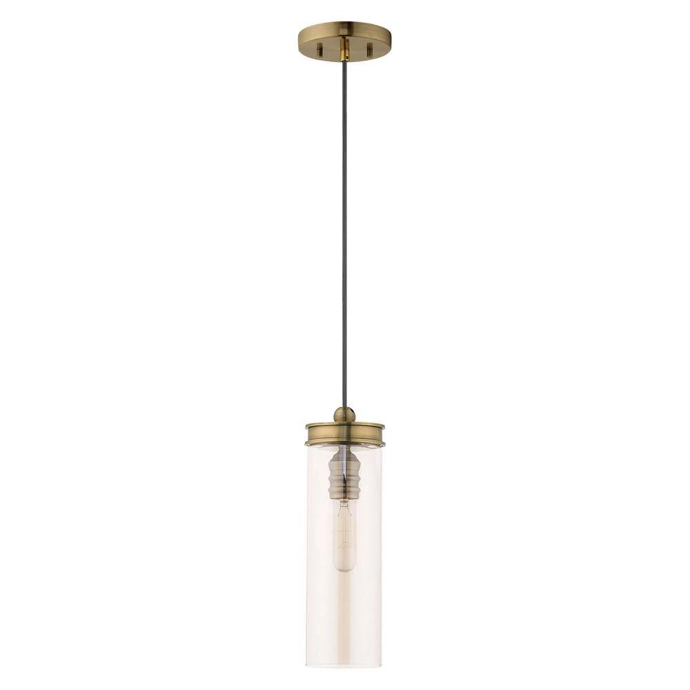 Livex Lighting is well known for quality, style and value. Blending modern aesthetic with industrial-chic design, this hanging mini pendant has a sleek champagne cylinder shaped glass which is suspended by antique brass hardware. This well-rounded fixture is sure to satisfy your lighting needs.