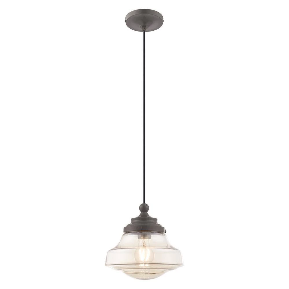 Livex Lighting is well known for quality, style and value. This mini pendant puts a new spin on schoolhouse style. The curvy champagne glass shade is paired with English bronze details, creating a look that is great for any space. This well-rounded fixture is sure to satisfy your lighting needs.