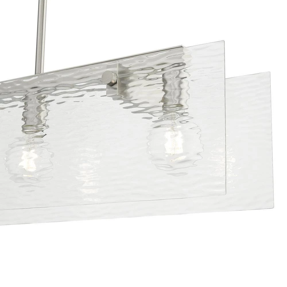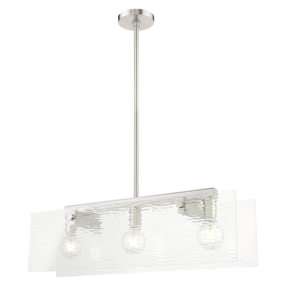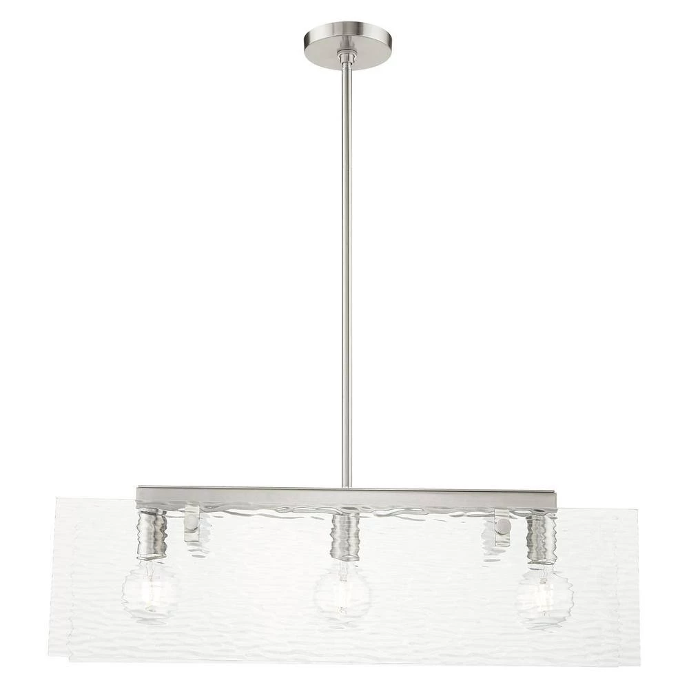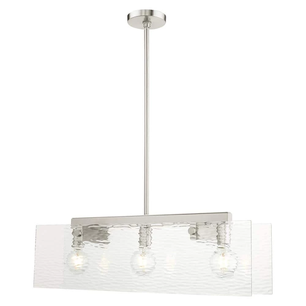 Livex Lighting is well known for quality, style and value. The Ashcroft collection redefines elegance. It boasts a brushed nickel finish combined with clear water glass. The scale of this 3-light linear chandelier amplifies todays contemporary approach to any interior needing dramatic air. Place it over your dining room table or a countertop and enjoy this unforgettable conversation piece. This well-rounded fixture is sure to satisfy your lighting needs.
