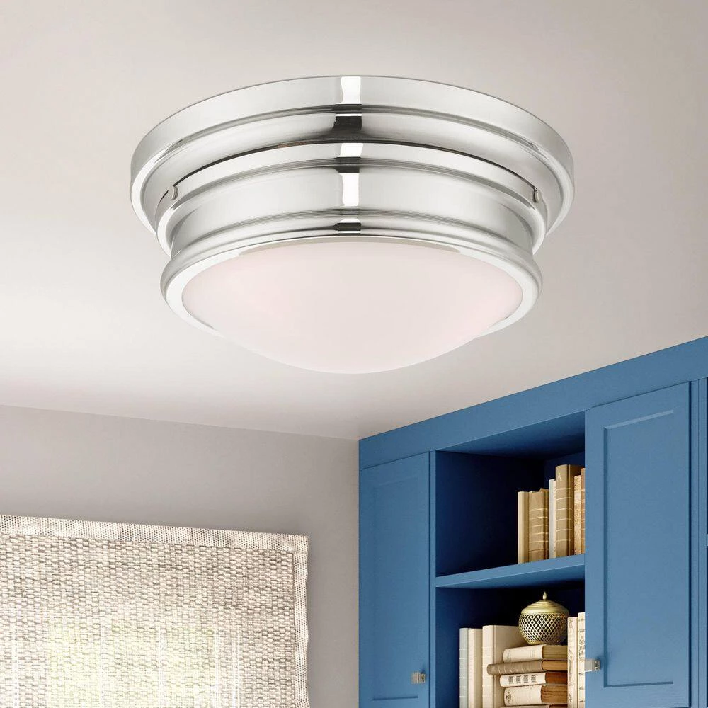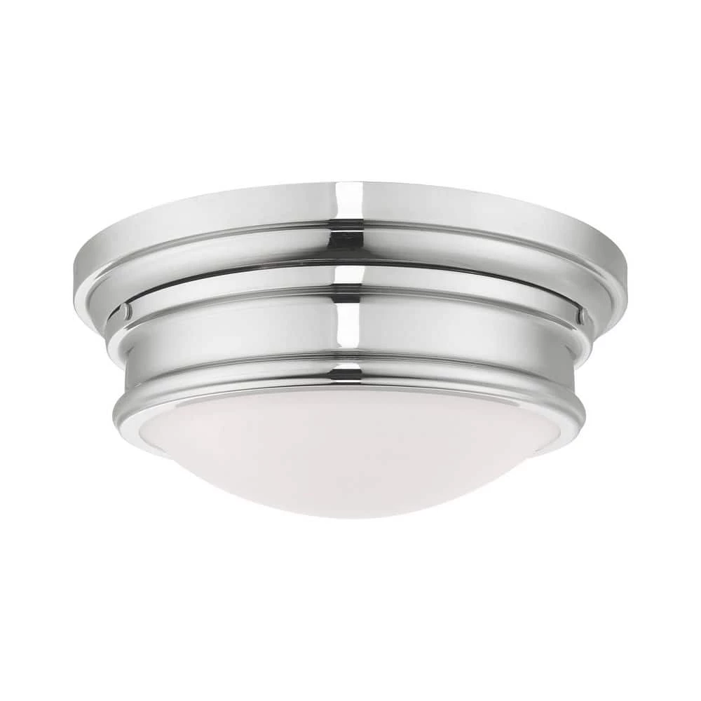 Livex Lighting is well known for quality, style and value. In a polished chrome finish paired with hand blown satin opal white glass, this sleek flush mount will complement your transitional decor with its clean, stylish look. This well-rounded fixture is sure to satisfy your lighting needs.