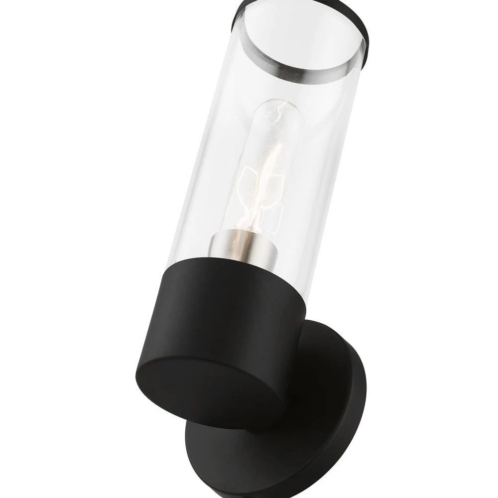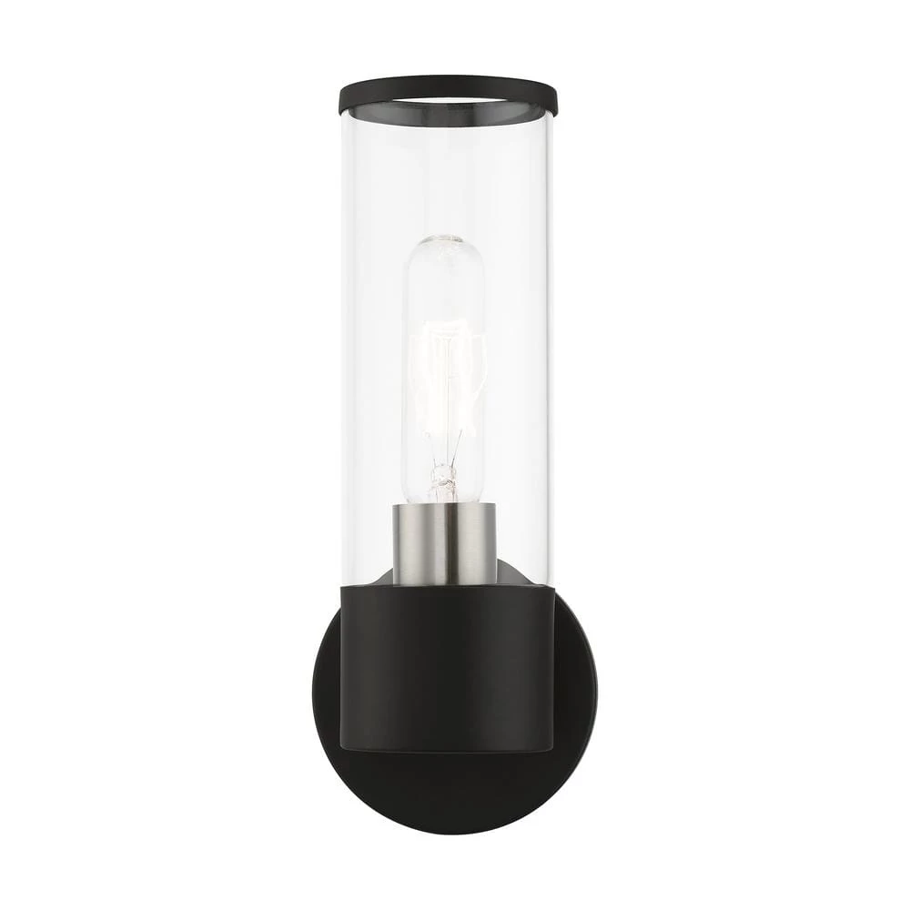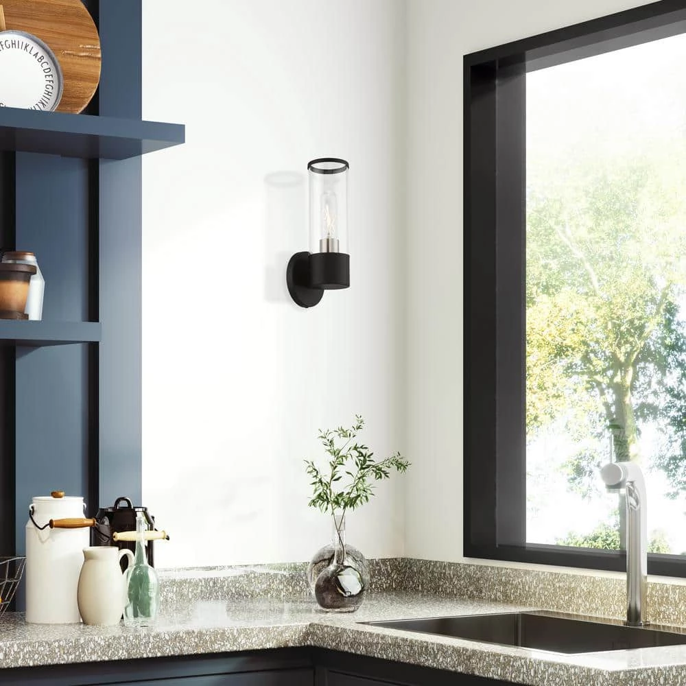 Add a dash of character and radiance to your home with this wall sconce. This single-light fixture from the Banca collection features a black finish with clear hand blown glass intentionally exposing the bulb inside for a trendy look. The clean lines of the back plate complement the cylindrical glass shade adorned with detailed trim on top creating an industrial, sleek, urban look that works well in most of today’s interiors. This fixture adds upscale charm and contemporary aesthetics to your home.