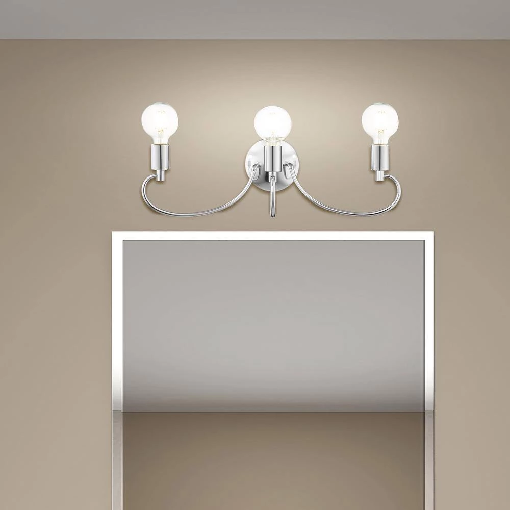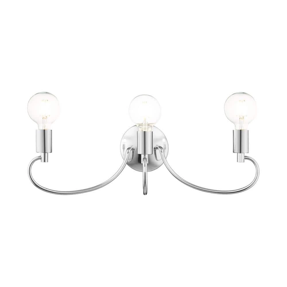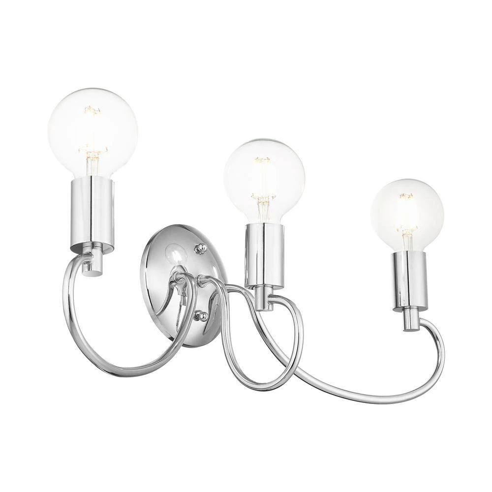 Livex Lighting is well known for quality, style and value. Graceful curved lines and exposed bulb sockets make the Bari collection perfect for your mid-mod or transitional bath. The eclectic look is perfect for spaces wanting an urban, minimalistic or industrial touch. With superb craftsmanship and affordable price, this polished chrome 3-light vanity sconce is sure to tastefully indulge your extravagant side. This well-rounded fixture is sure to satisfy your lighting needs.