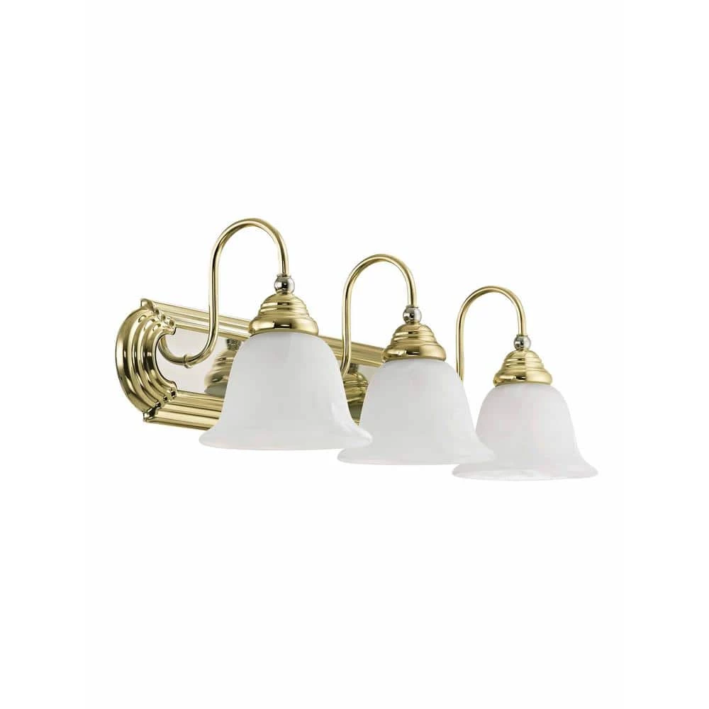 The Belmont bath bracket with polished chrome accents & sweeping polished brass arcs framing elegant, alabaster swirl glass. The Belmont collection is warm and traditional and will easily become the focal point of your special room. With the superb craftsmanship and affordable price this fixture is sure to tastefully indulge your extravagant side.
