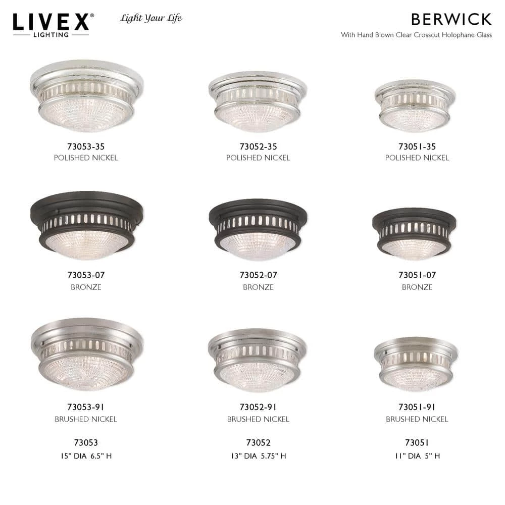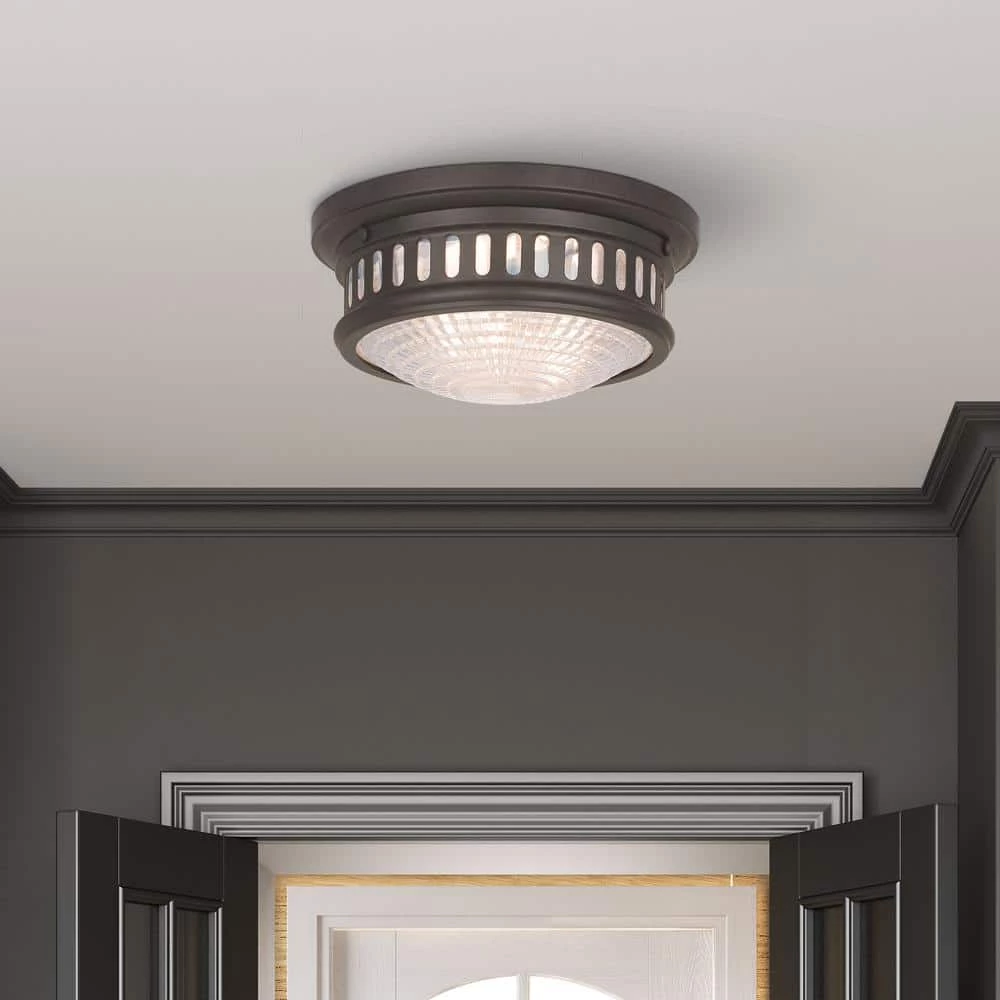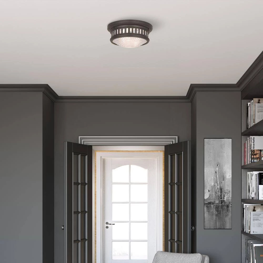 Livex Lighting is well known for quality, style and value. The classic simple design of this bronze flush mount makes it versatile to put any where. The clean lines give an updated look to the hand blown prismatic glass. This well-rounded fixture is sure to satisfy your lighting needs.