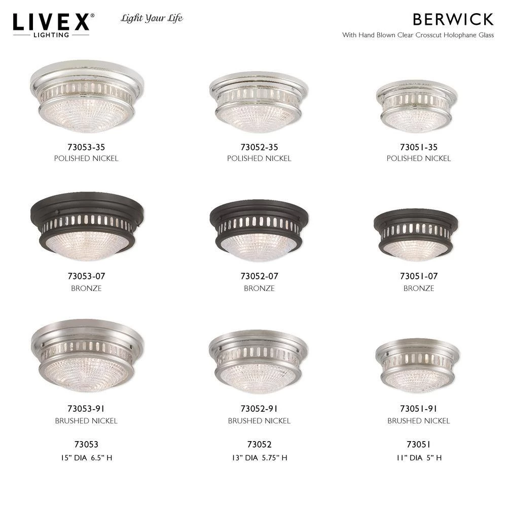 Livex Lighting is well known for quality, style and value. The classic simple design of this brushed nickel flush mount makes it versatile to put any where. The clean lines give an updated look to the hand blown prismatic glass. This well-rounded fixture is sure to satisfy your lighting needs.