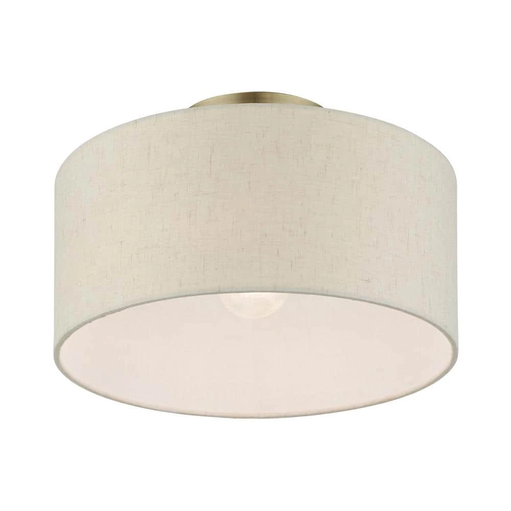 Livex Lighting is well known for quality, style and value. Add a touch of stylish sophistication with the Blossom series, a graceful transitional collection. Look no further if you crave to add warmth and richness to any formal or casual interior. The elegant handcrafted hardback oatmeal colored shade will create a timeless feel to the hallway, bathroom, kitchen or a bedroom. This meticulously crafted single-light semi flush is shown in an antique brass finish. This well-rounded fixture is sure to satisfy your lighting needs.