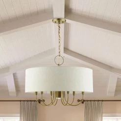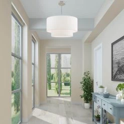 - Equipped with an off white hand crafted hardback shade