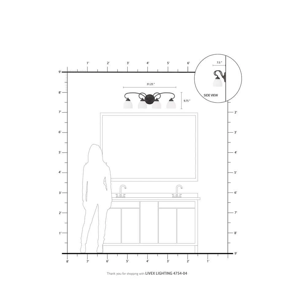 - Requires (4) 100 Watt Medium Base Bulbs