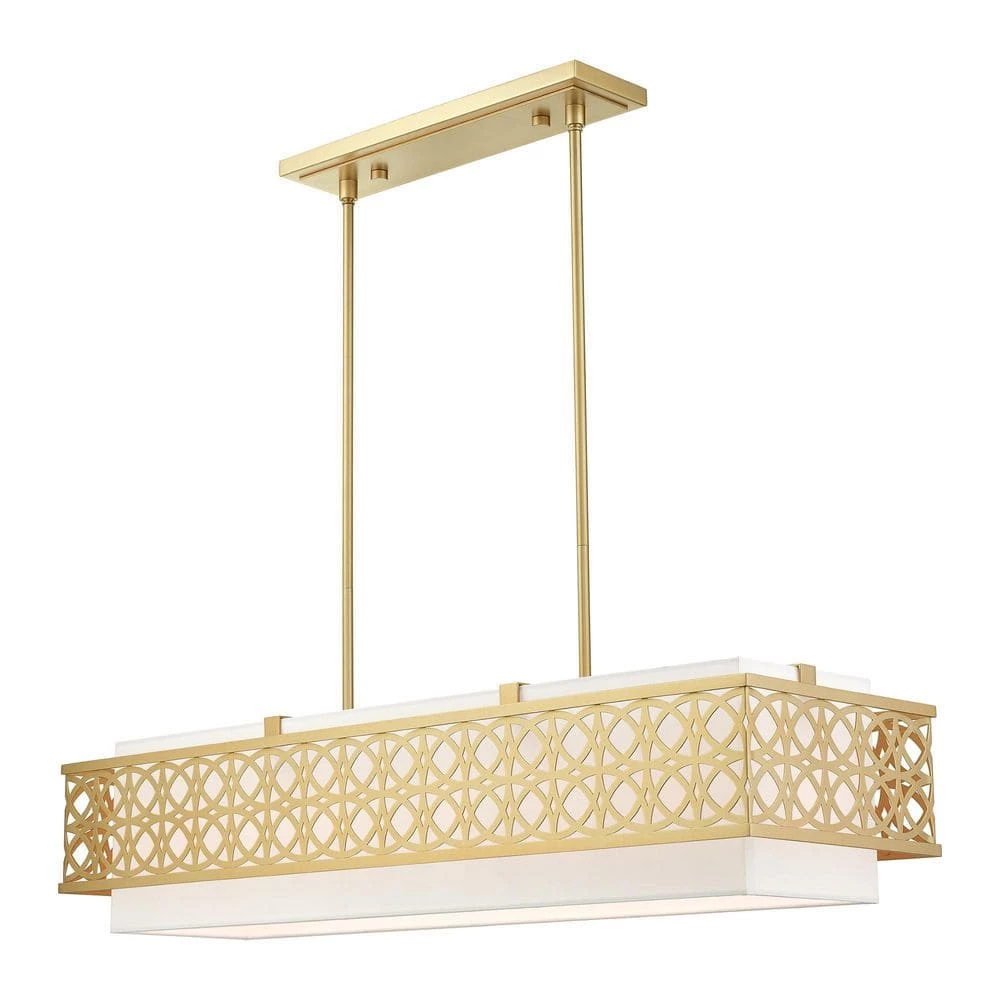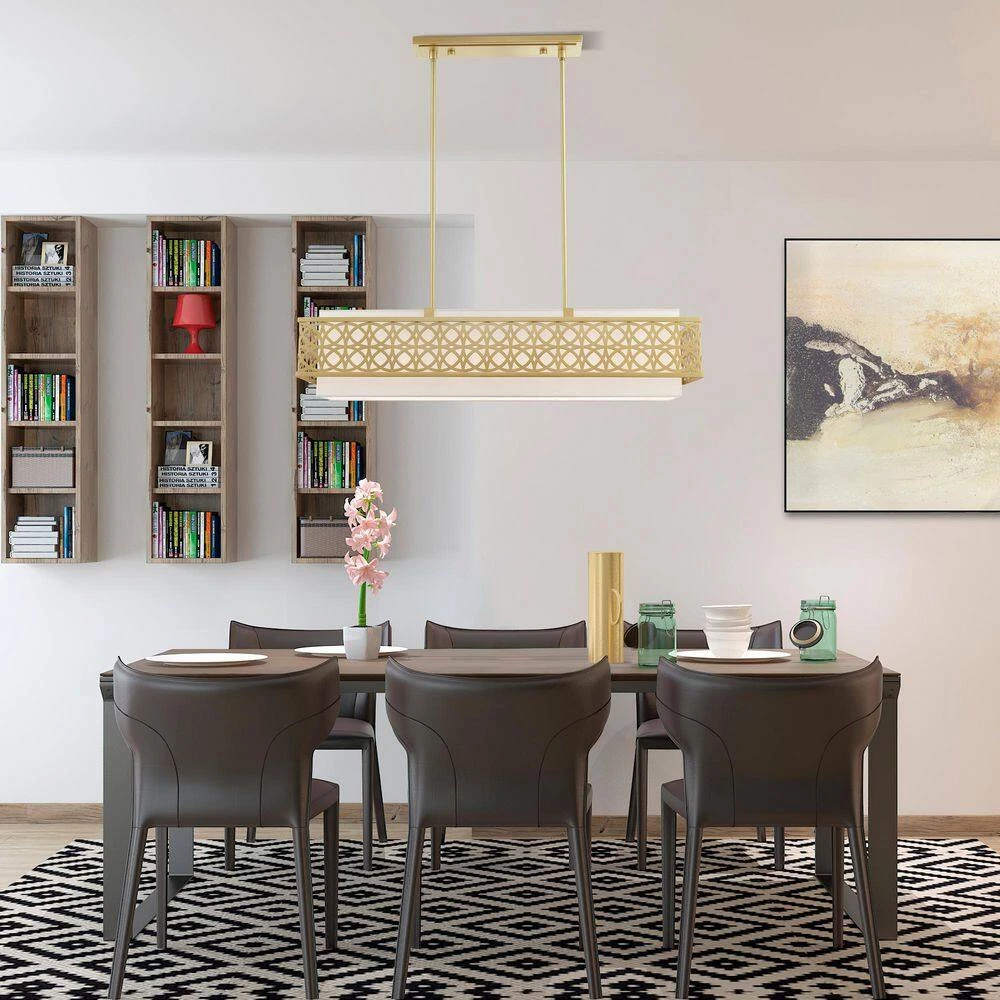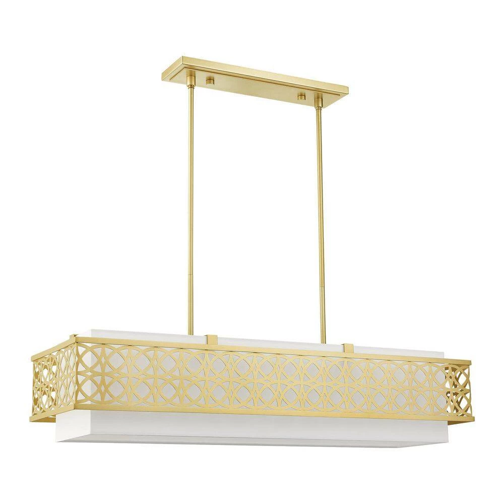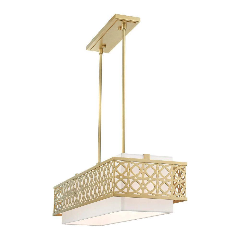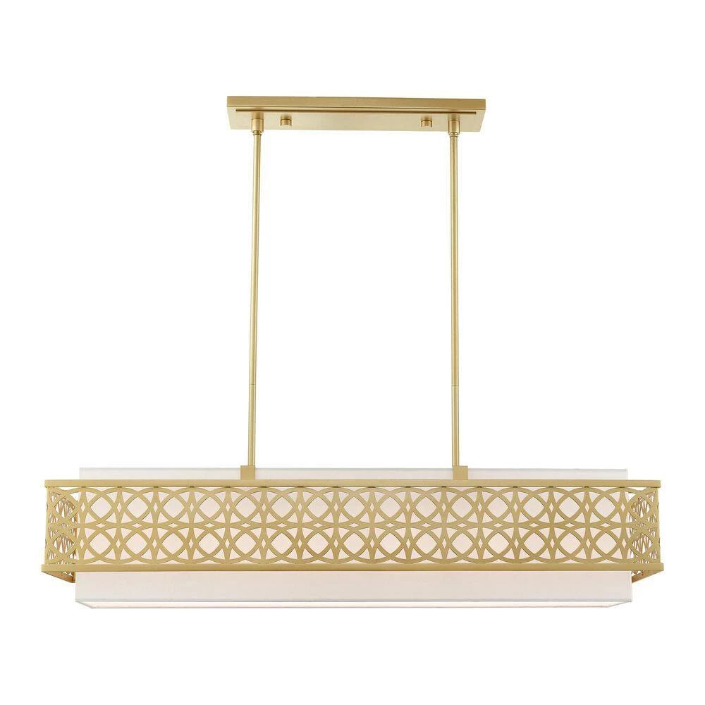 Livex Lighting is well known for quality, style and value. The transitional Calinda series adds refined style and a hint of mystery to your decor. The soft gold finish and an off-white handcrafted hardback shade create warm illumination, while soft light brings to life the intricate fretwork pattern. This six-light linear chandelier will add a sophisticated and glamorous look to almost any interior design style. It will work great over a dining table, kitchen island or bar counter. This well-rounded fixture is sure to satisfy your lighting needs.