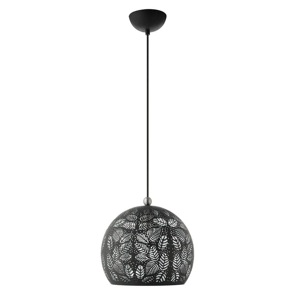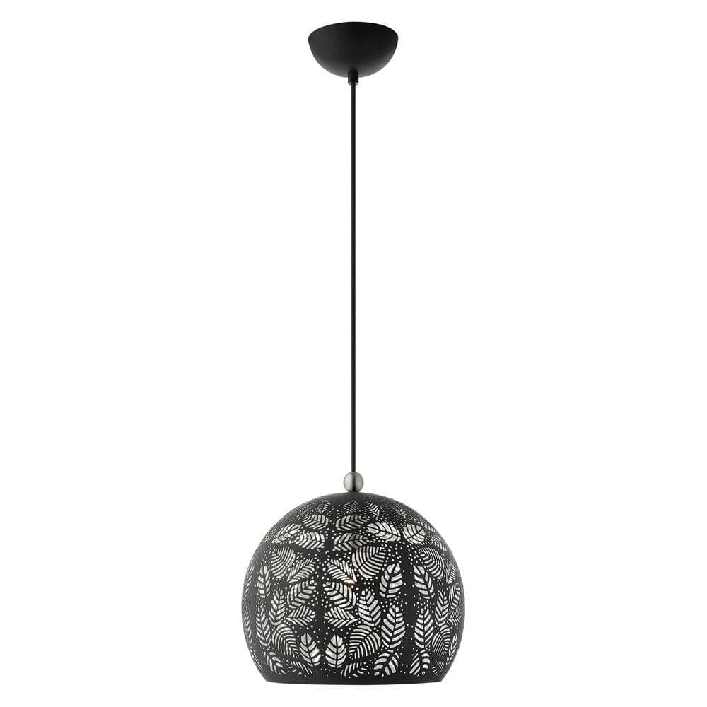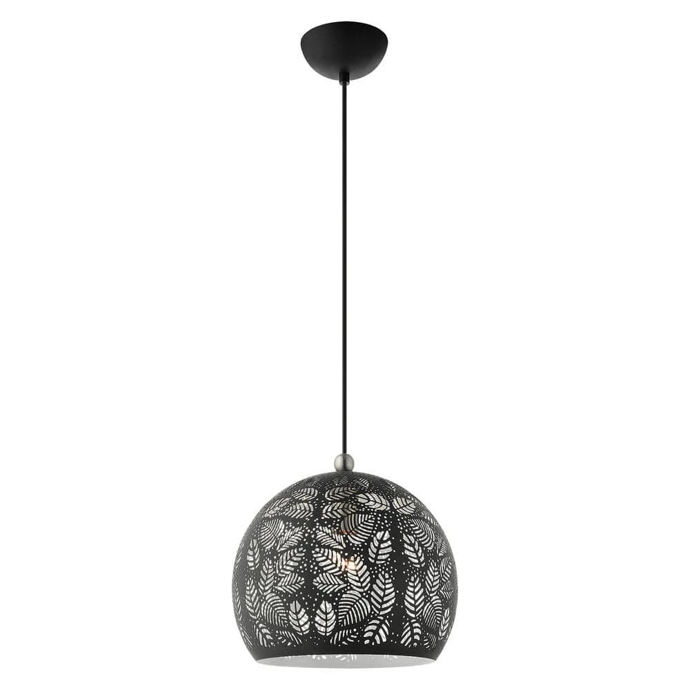 Livex Lighting is well known for quality, style and value. Chantilly features a beautiful black finish with brushed nickel finish accents. Light artfully reflects and refracts through the filigreed leaves to provide a dramatic focal point to any room. This small one-light pendant will add an unmistakable touch of elegance to your dining room, kitchen or a bedroom. This well-rounded fixture is sure to satisfy your lighting needs.