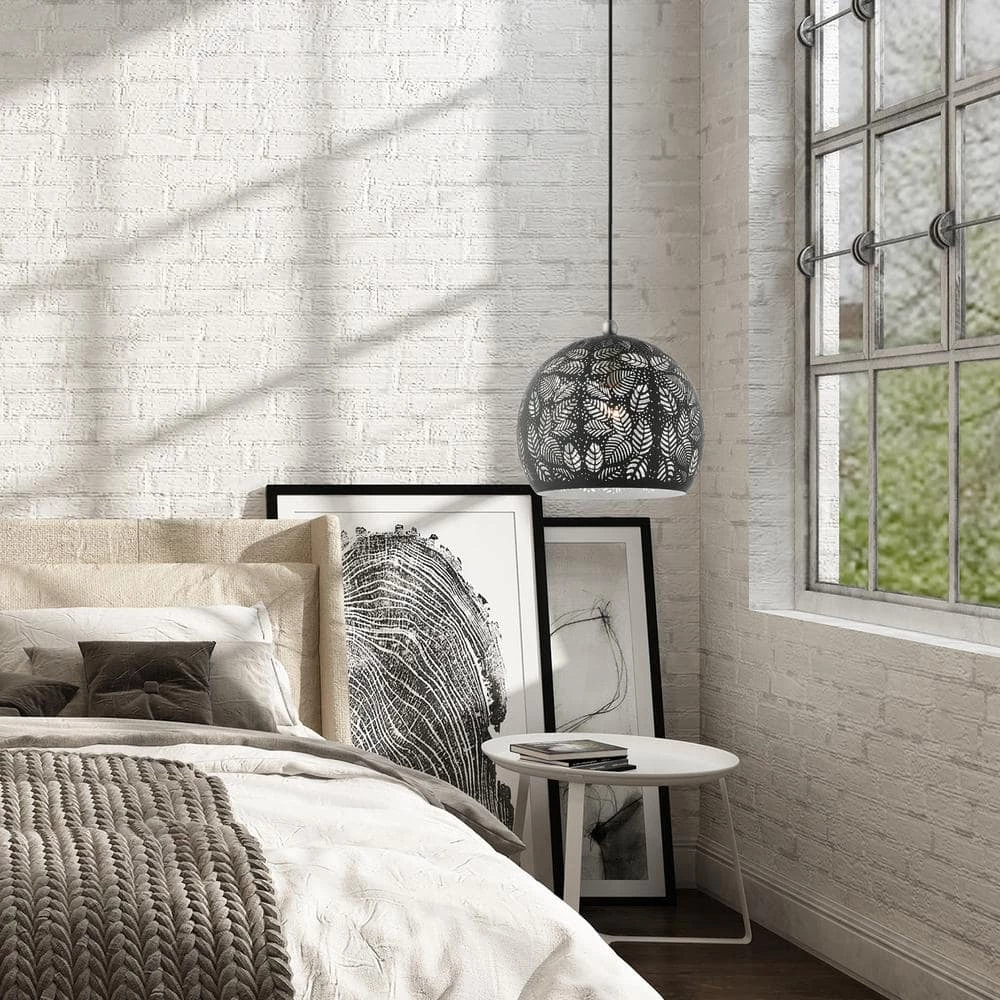 - Equipped with black ornamental metal shade with white finish inside