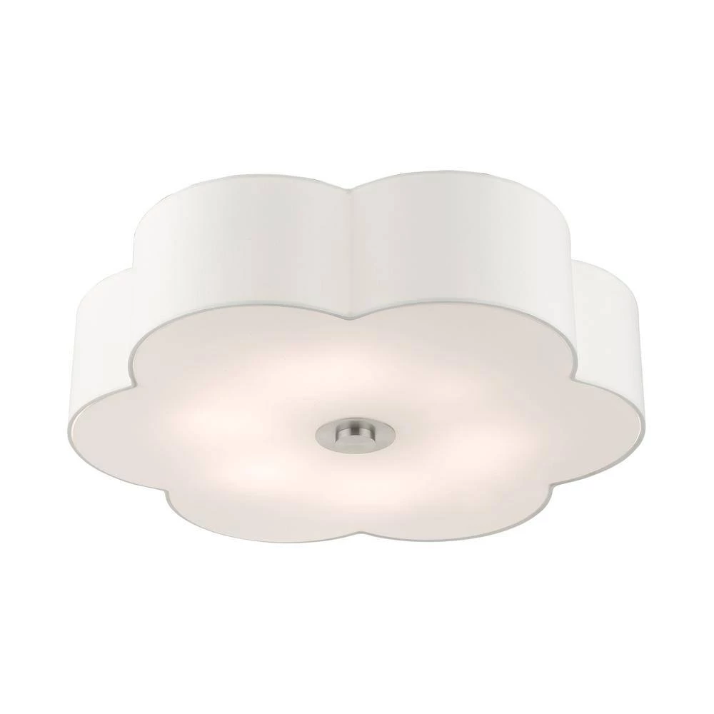 Livex Lighting is well known for quality, style and value. The Chelsea line exudes French country chic vibe. This extra-large six-light semi flush features a beautiful hand crafted scalloped shaped, off-white hardback shade and comes in a brushed nickel finish. Perfect pick for a traditional, transitional or contemporary style. Enjoy this design in the living room, bedroom or dining room. This well-rounded fixture is sure to satisfy your lighting needs.