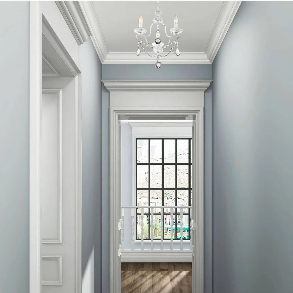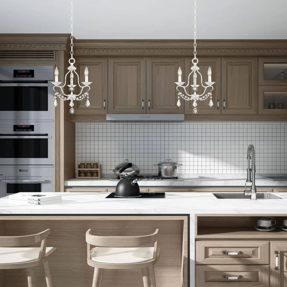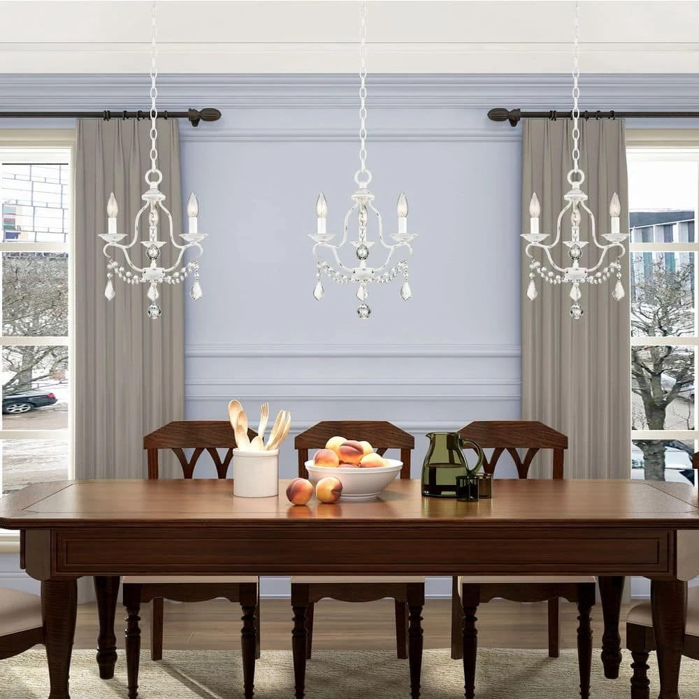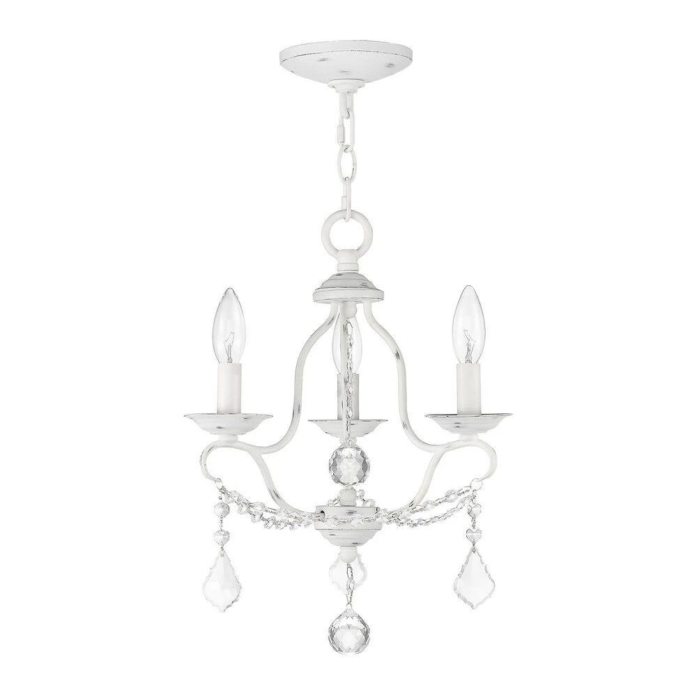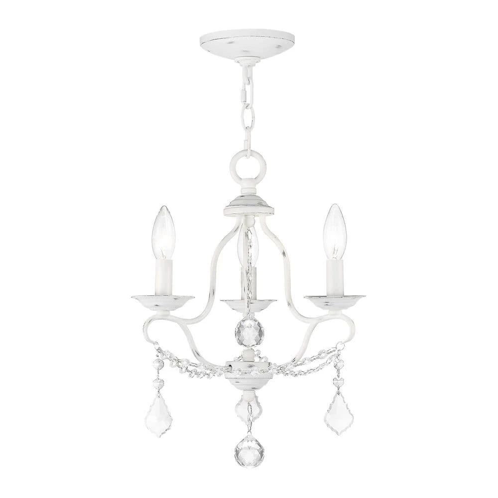 Simple elegance adorns the Chesterfield collection as strings of clear crystal gently cascade from a graceful frame of small scale tubing finished in antique white.
