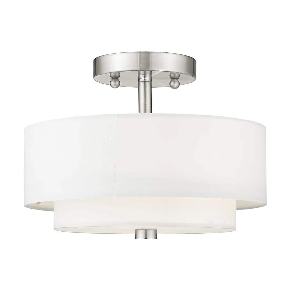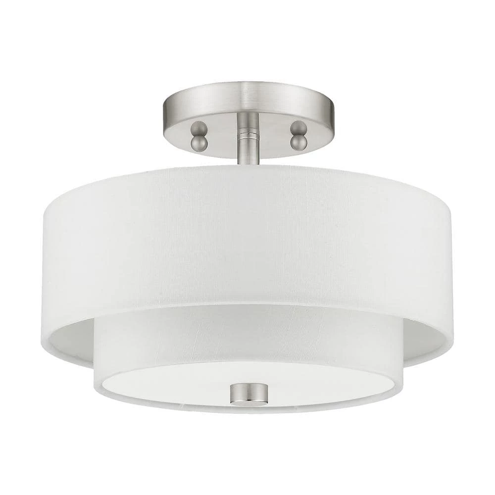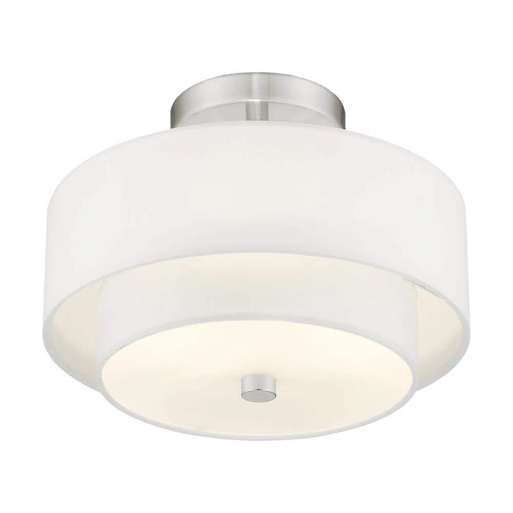 Livex Lighting is well known for quality, style and value. The sleek style and simple design of this semi flush mount makes it easy to use in any space. The double hand crafted off white fabric hardback fabric drum shade and satin white hardened glass diffuser blend for a clean look. This well-rounded fixture is sure to satisfy your lighting needs.