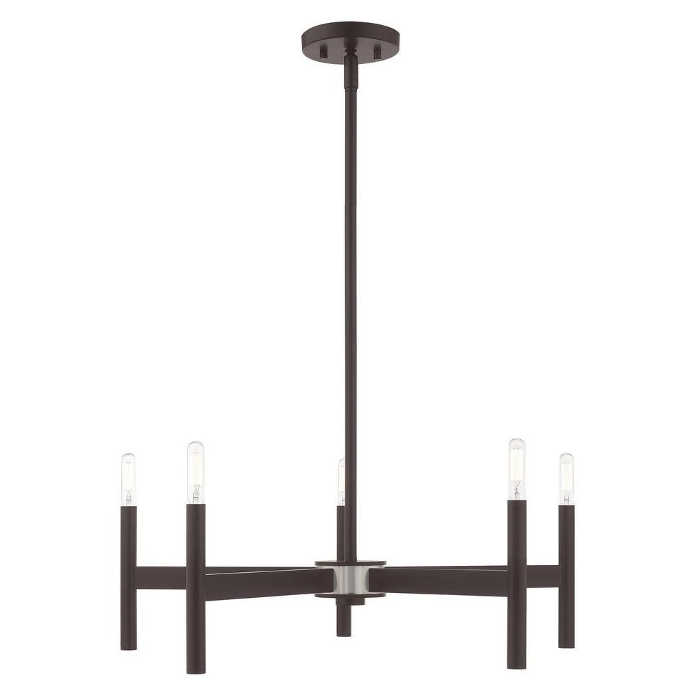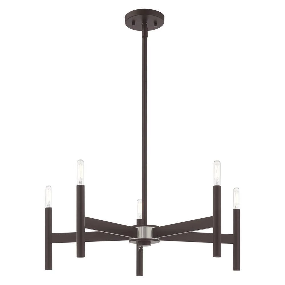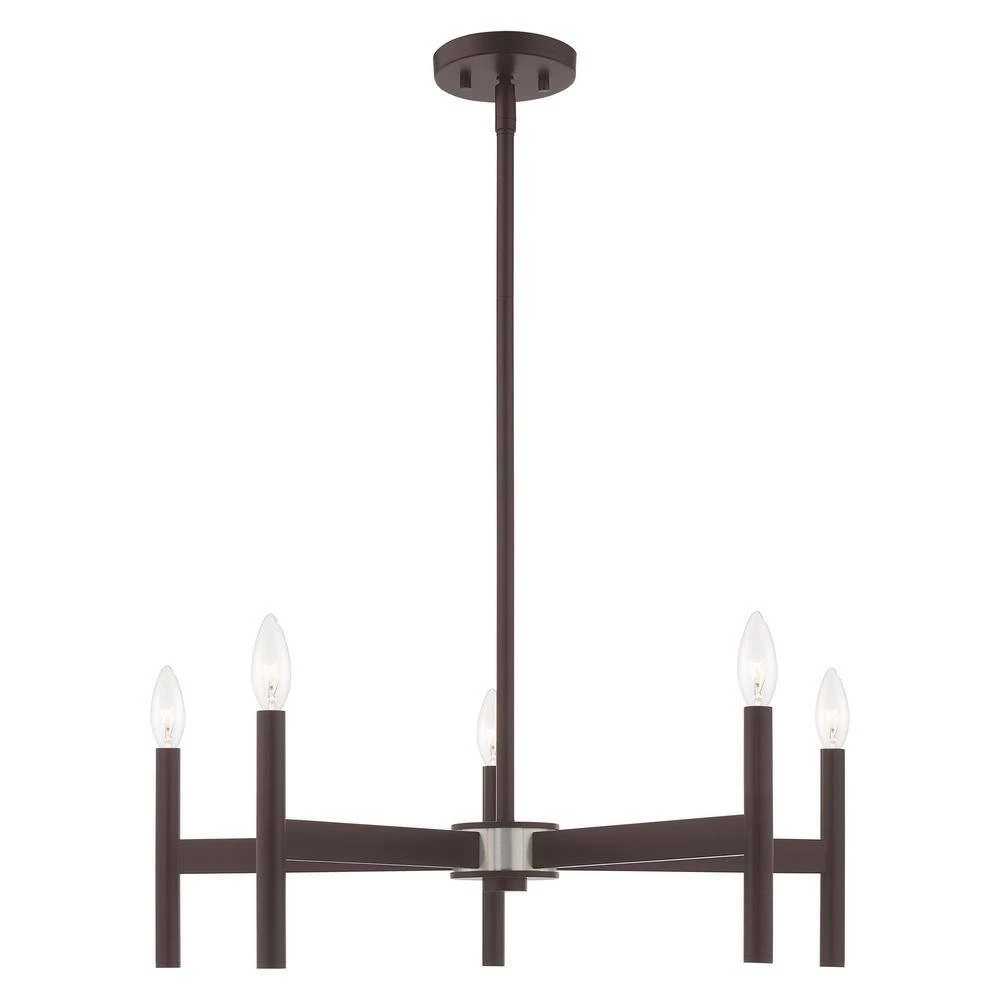 Livex Lighting is well known for quality, style and value. Exposed bulb sockets are fixed over a bronze finish with brushed nickel accent to create an eclectic look perfect for mid century modern or transitional spaces wanting an industrial touch. This well-rounded fixture is sure to satisfy your lighting needs.