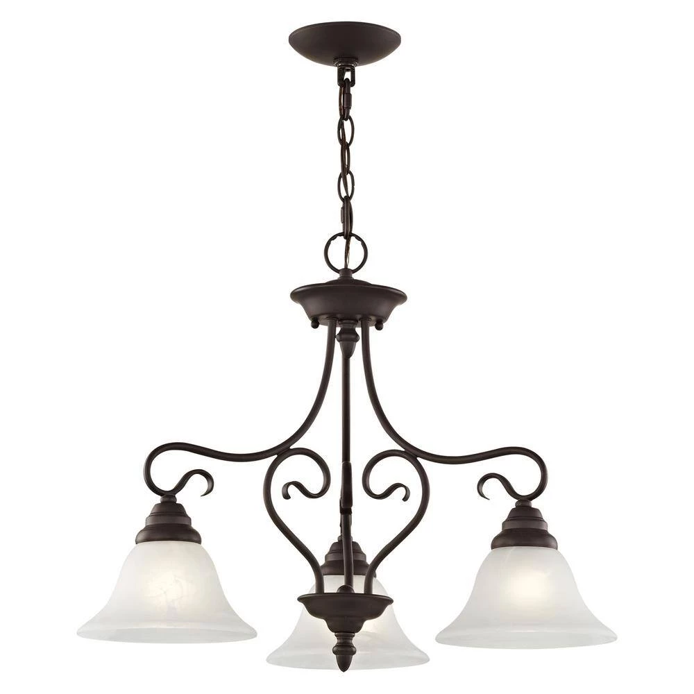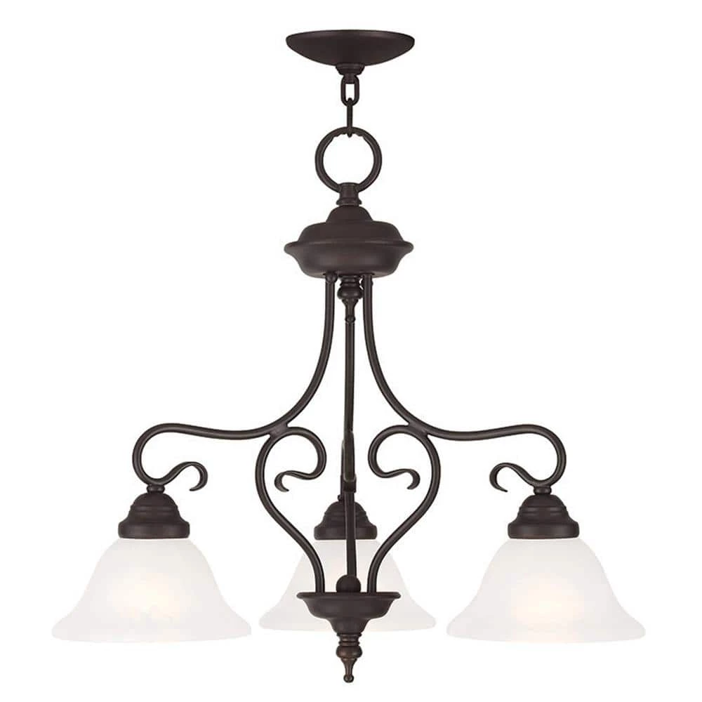Livex Lighting is well known for quality, style and value. Classic bronze 3 light chandelier paired with white alabaster glass. Timeless in its vintage appeal, this light is stylish for both new and restored homes. This well-rounded fixture is sure to satisfy your lighting needs.
