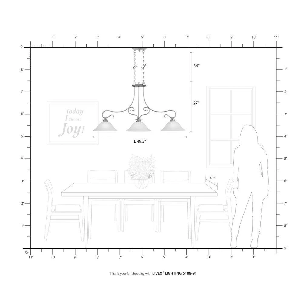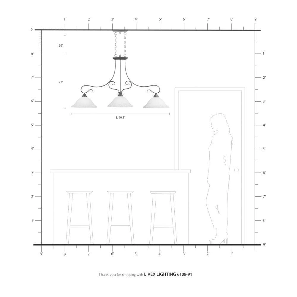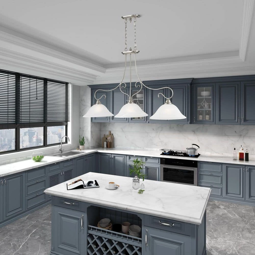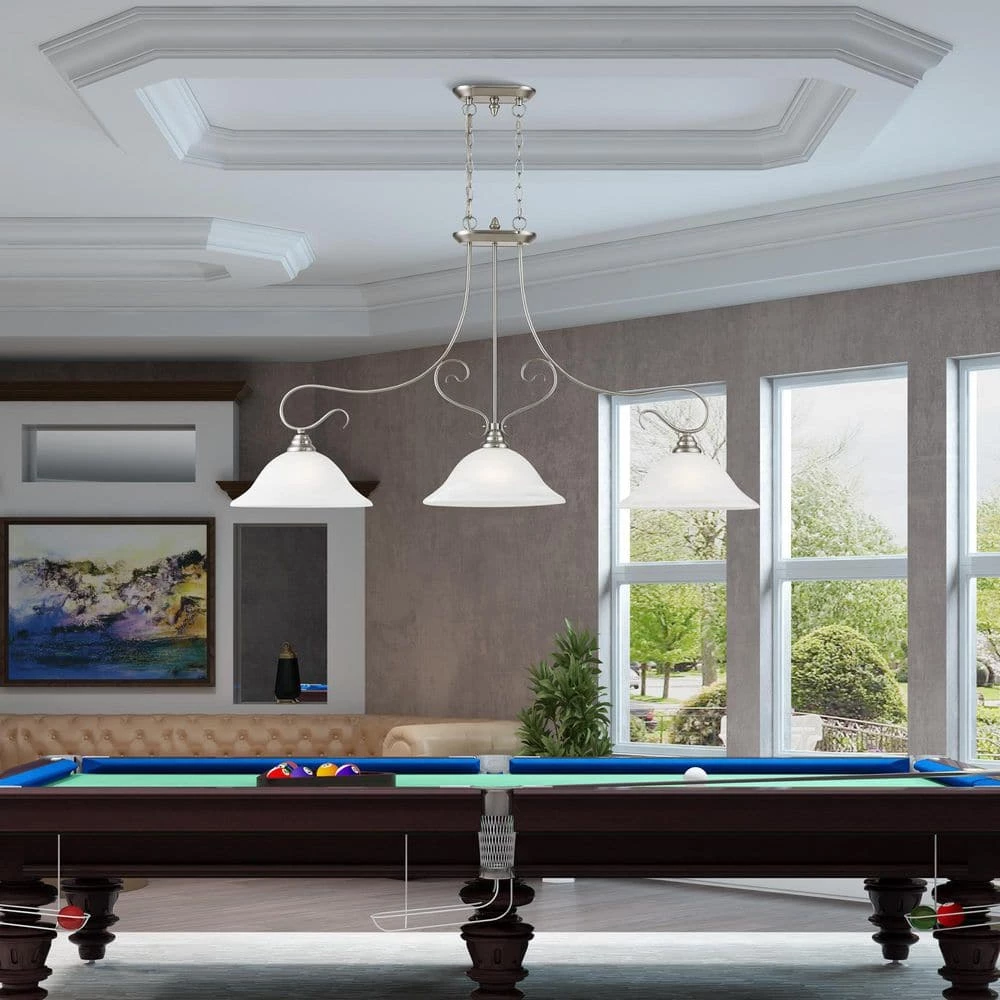 Livex Lighting is well known for quality, style and value. Classic brushed nickel 3 light linear chandelier paired with white alabaster glass. Timeless in its vintage appeal, this light is stylish for both new and restored homes. This well-rounded fixture is sure to satisfy your lighting needs.