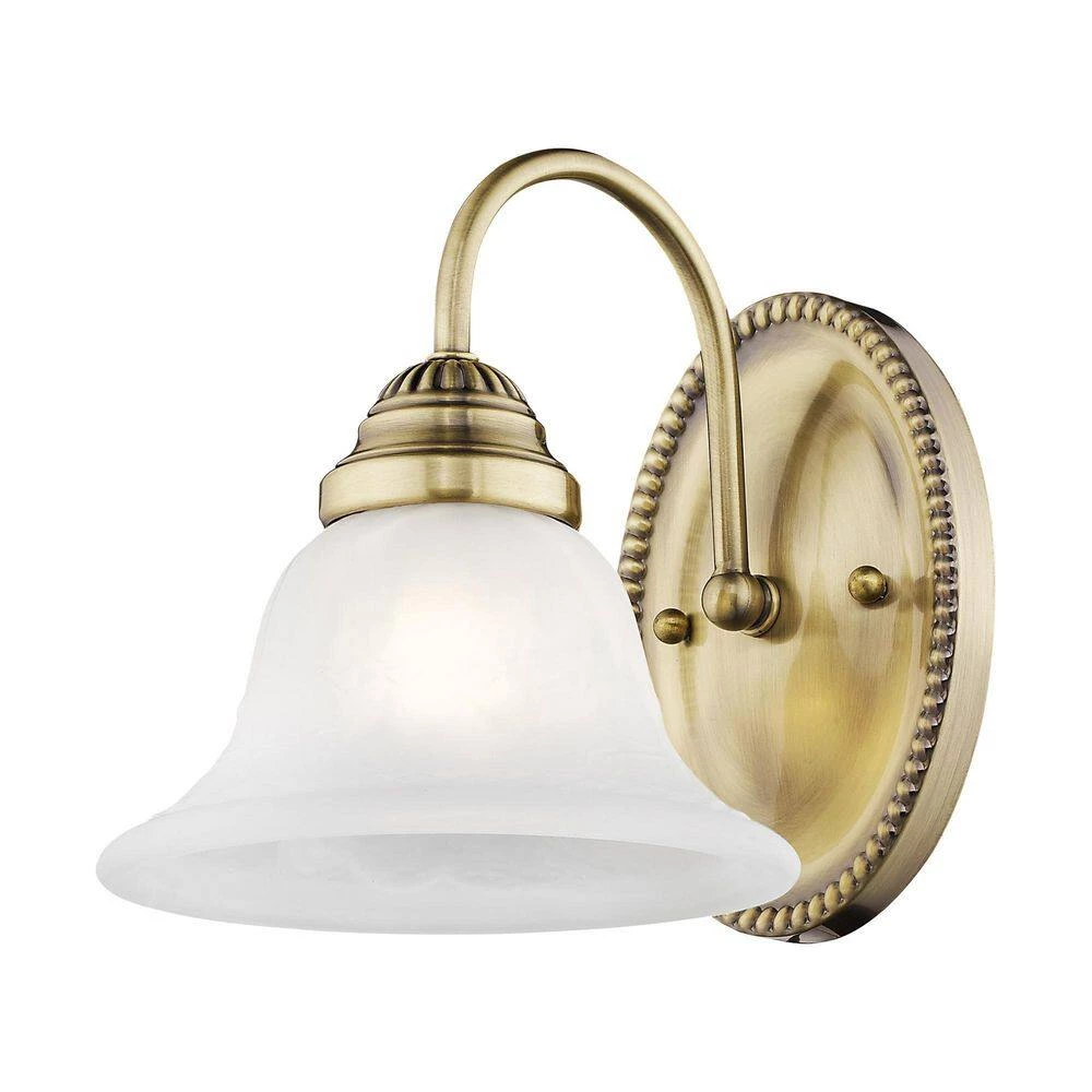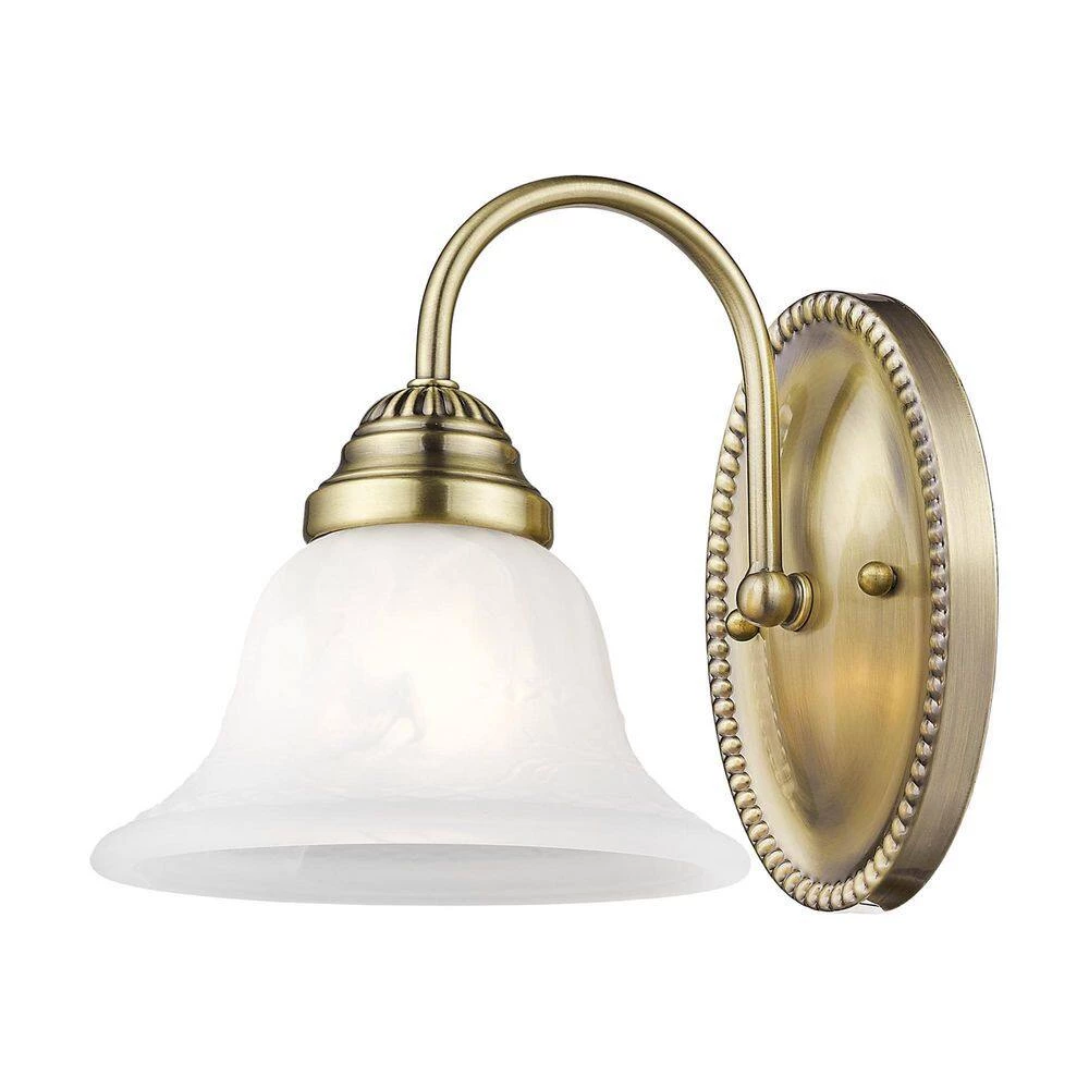 Livex Lighting is well known for quality, style and value. This one light wall sconce from the Edgemont collection is a fine and handsome fixture that features white alabaster glass. Edgemont is comprised of traditional iron forms in an antique brass finish. This well-rounded fixture is sure to satisfy your lighting needs.