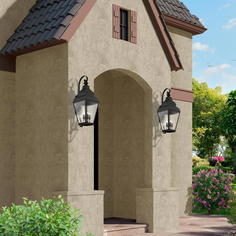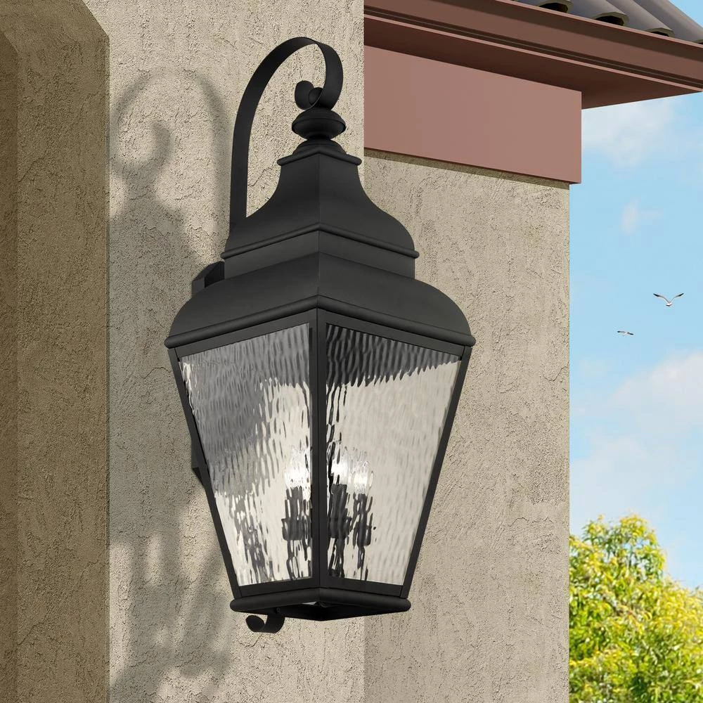 Livex Lighting is well known for quality, style and value. Finished in black with clear water glass, this outdoor wall lantern offers plenty of stylish illumination for your home’s exterior. With the superb craftsmanship and affordable price this fixture is sure to tastefully indulge your extravagant side.