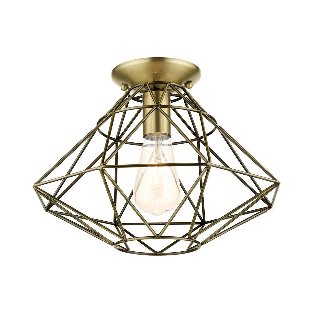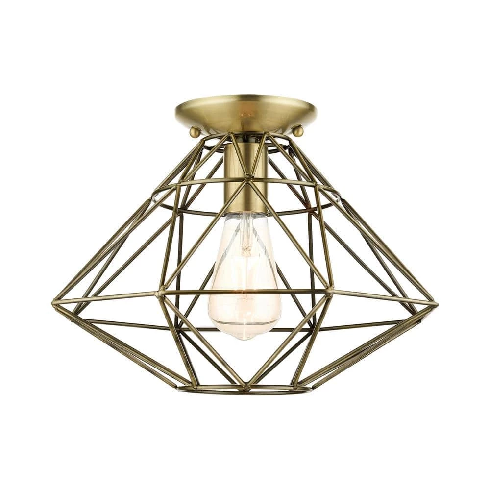 Livex Lighting is well known for quality, style and value. The Geometric collection showcases an angular frame set in a contemporary ambiance for a perfect accenting look. This single light flush mount is easy to install and it’s great solo over a hallway, bathroom or small bedroom setting. The design is a wonderful way to show off your modern style with ease. It is shown in an antique brass finish. This well-rounded fixture is sure to satisfy your lighting needs.