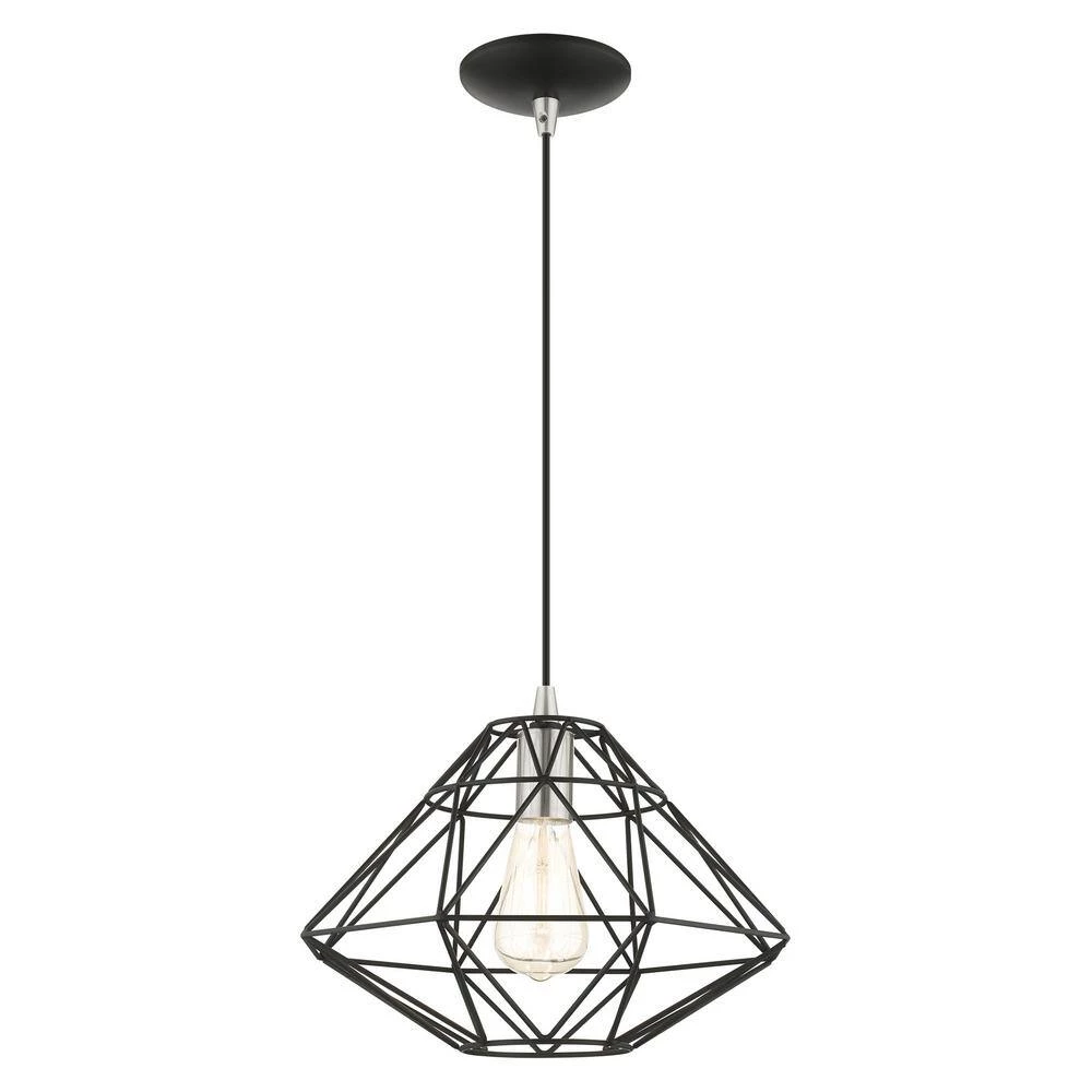Livex Lighting is well known for quality, style and value. The Geometric collection showcases an angular frame set in a contemporary ambiance for a perfect accenting look. This single light pendant suspends simply, and it’s great solo over focus points or set in pairs or trios over long counter tops and islands. The design is a wonderful way to show off your modern style with ease. It is shown in a black finish with brushed nickel finish accents. This well-rounded fixture is sure to satisfy your lighting needs.