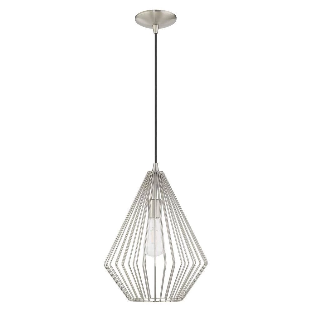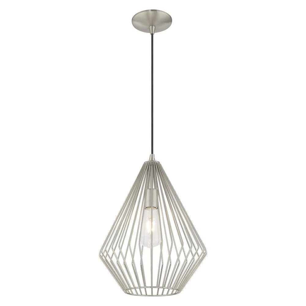 Livex Lighting is well known for quality, style and value. The stunning dimension make this contemporary mini pendant a modern home lighting choice. The open, brushed nickel geometrical shade design allows an easy flow of light to shine over a dining room table or kitchen island. This well-rounded fixture is sure to satisfy your lighting needs.