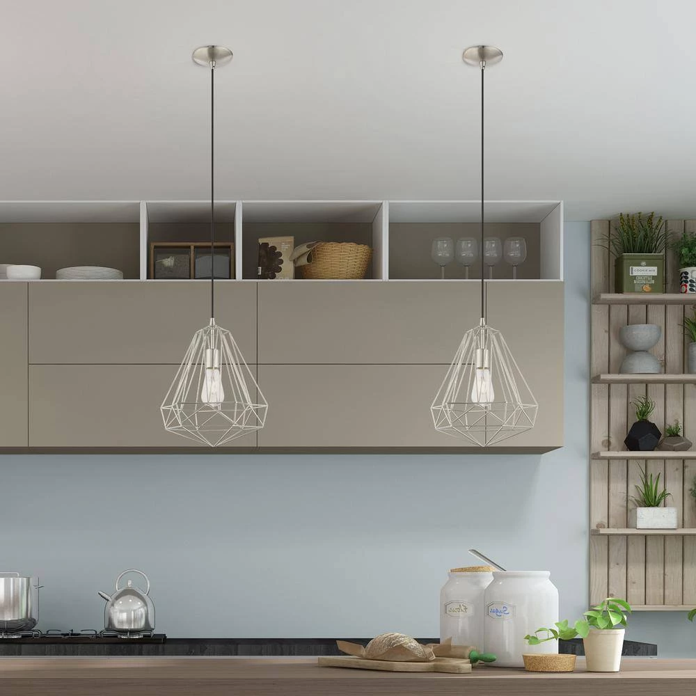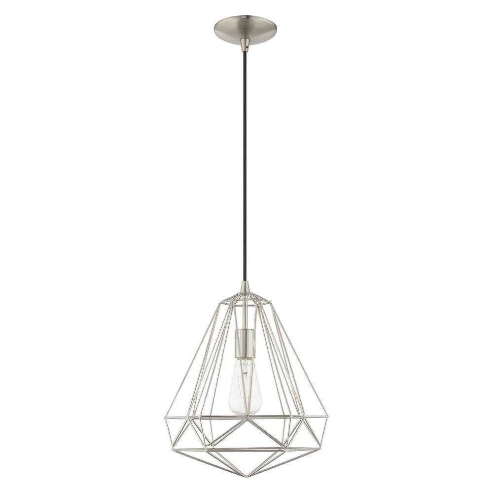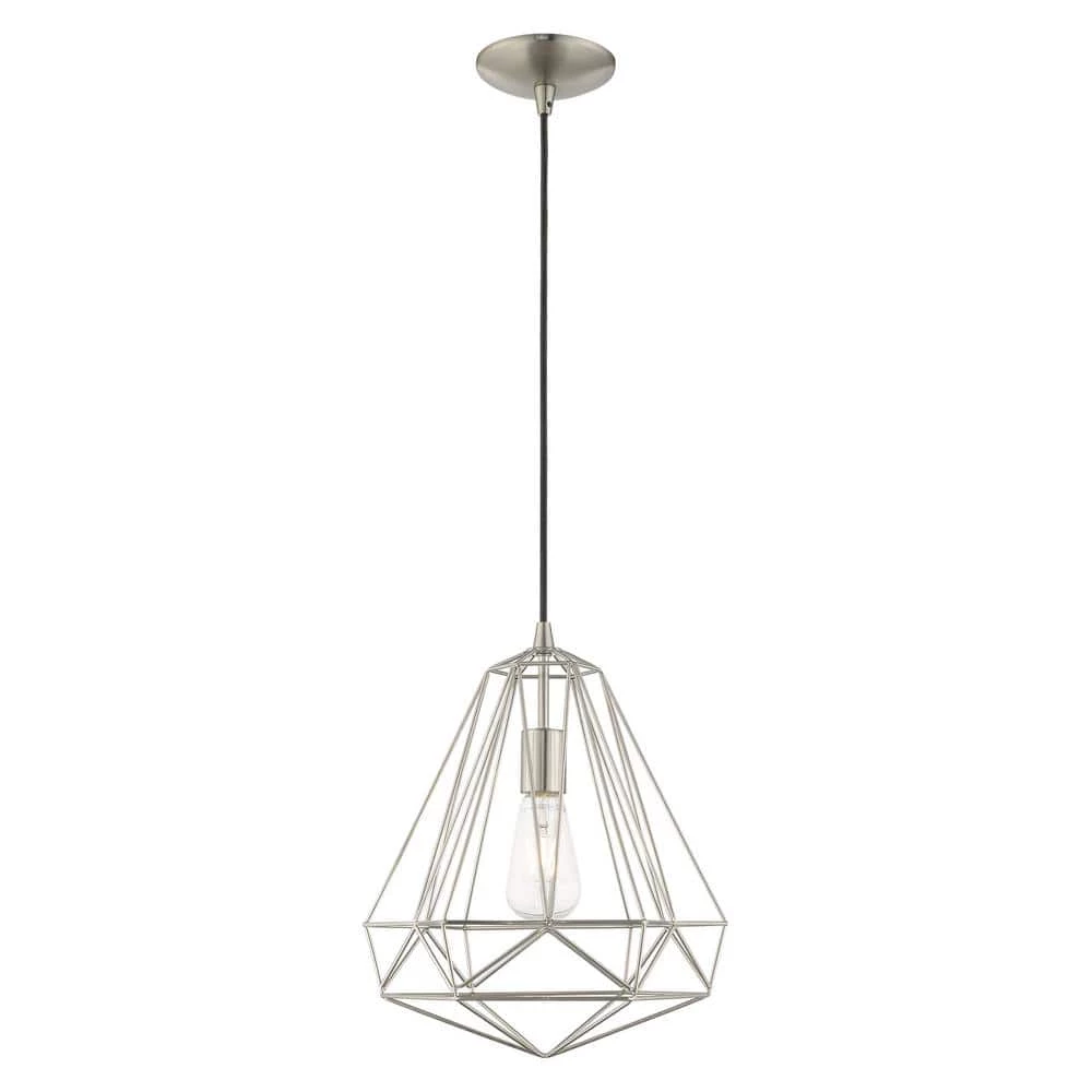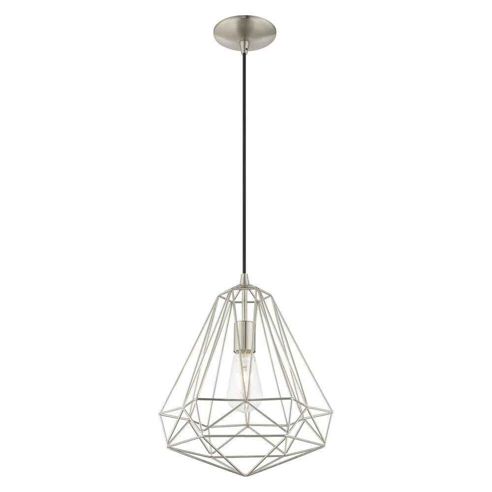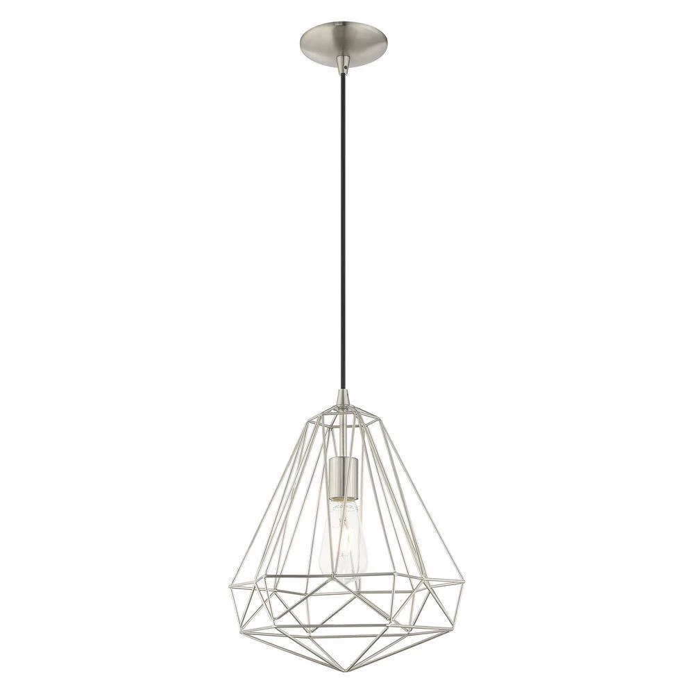 Livex Lighting is well known for quality, style and value. This mini pendant features a brushed nickel angular frame in the contemporary tradition for a perfect accenting look. Featuring a single bulb and simple suspension, it’s great solo over focus points or set in pairs or trios over long countertops and islands. The facet is a wonderful way to show off your modern style with ease. This well-rounded fixture is sure to satisfy your lighting needs.