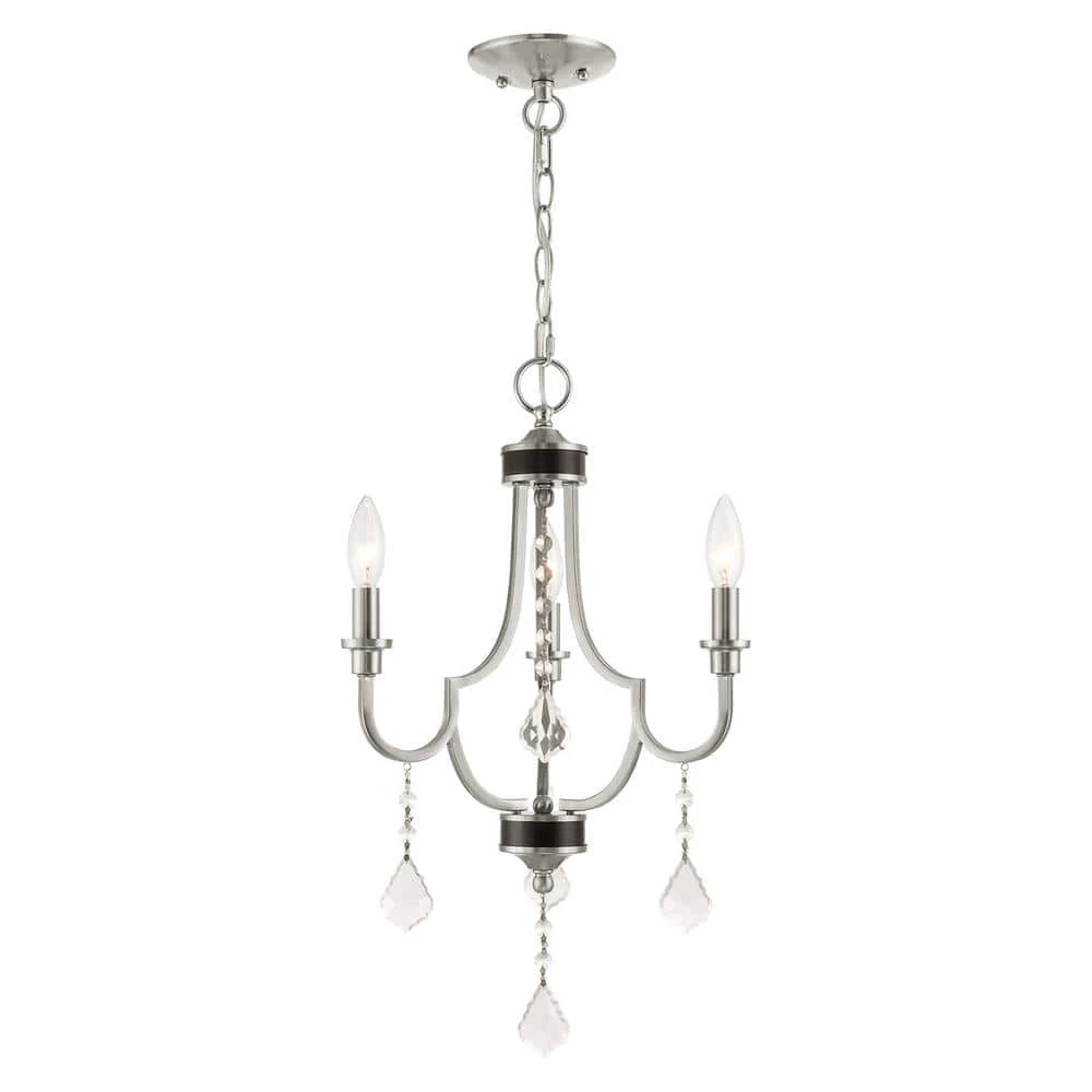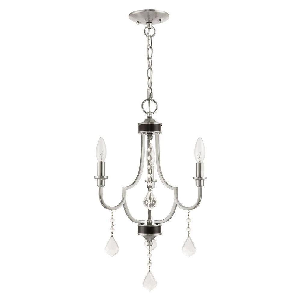 Livex Lighting is well known for quality, style and value. Bring simple, yet elegant, charm to your living space with this beautiful transitional 3 light mini chandelier. In a brushed nickel finish, the clear crystals on the mini chandelier provide a understated clean look, that’s perfect for any room in your home. This well-rounded fixture is sure to satisfy your lighting needs.