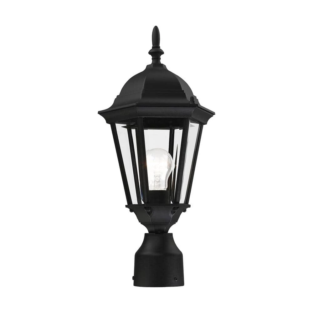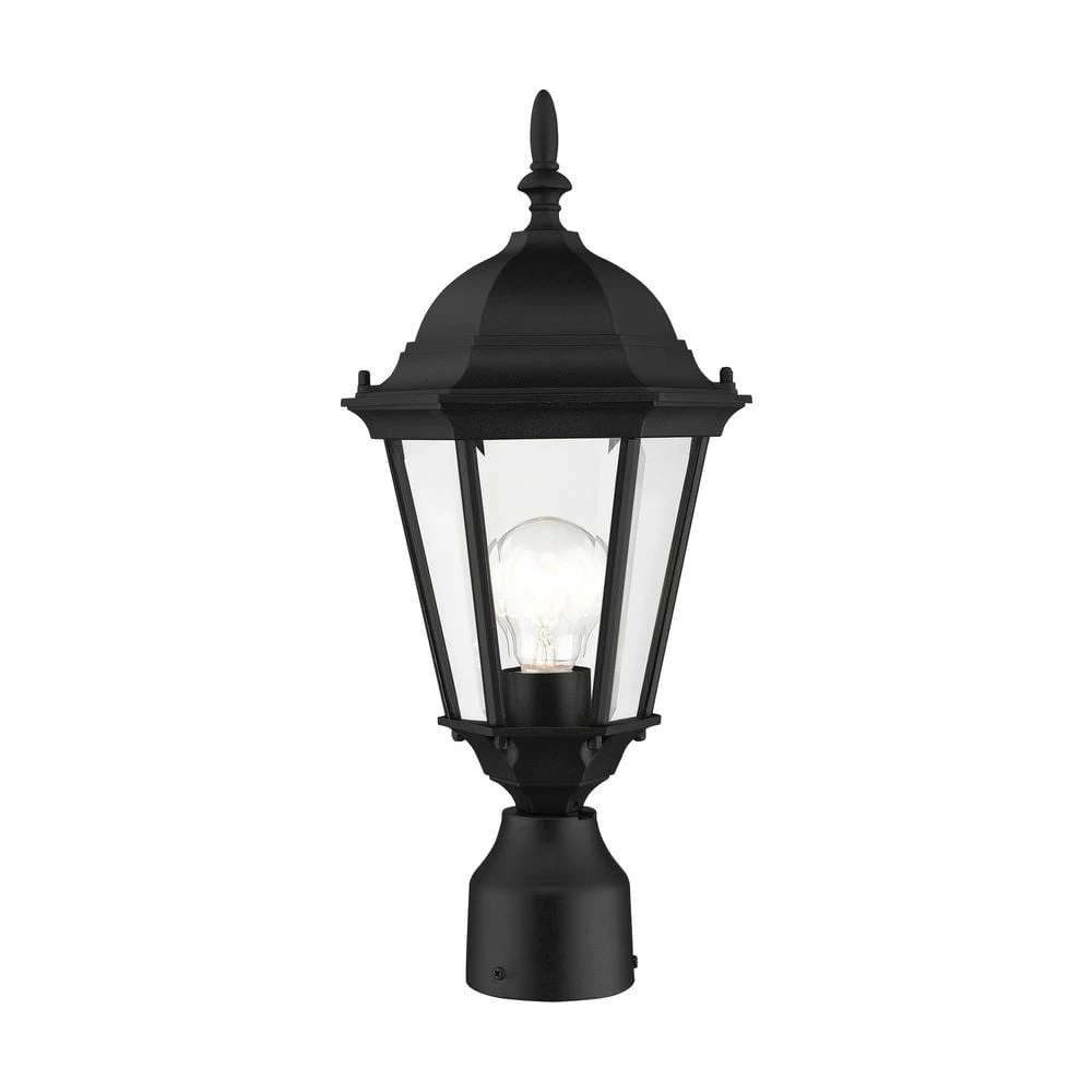 Livex Lighting is well known for quality, style and value. The elegant silhouette of the Hamilton collection is a classic that is sure to please even the most discriminating taste. This outdoor single-light small post top lantern features a decorative top and finial which are paired with a simple six-sided frame in a textured black finish with clear beveled glass. Constructed of cast aluminum, this durable exterior fixture looks best in traditional or transitional outdoor settings. This well-rounded fixture is sure to satisfy your lighting needs.