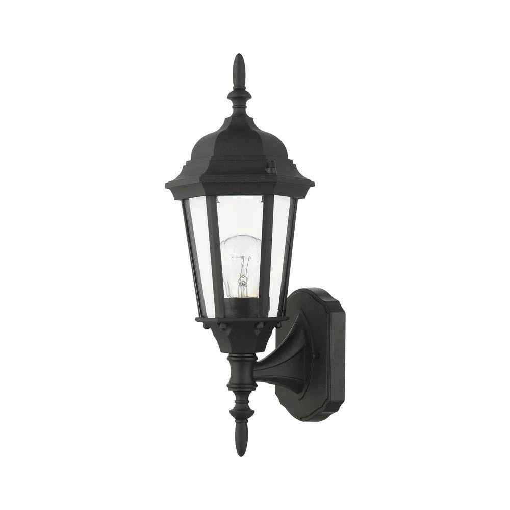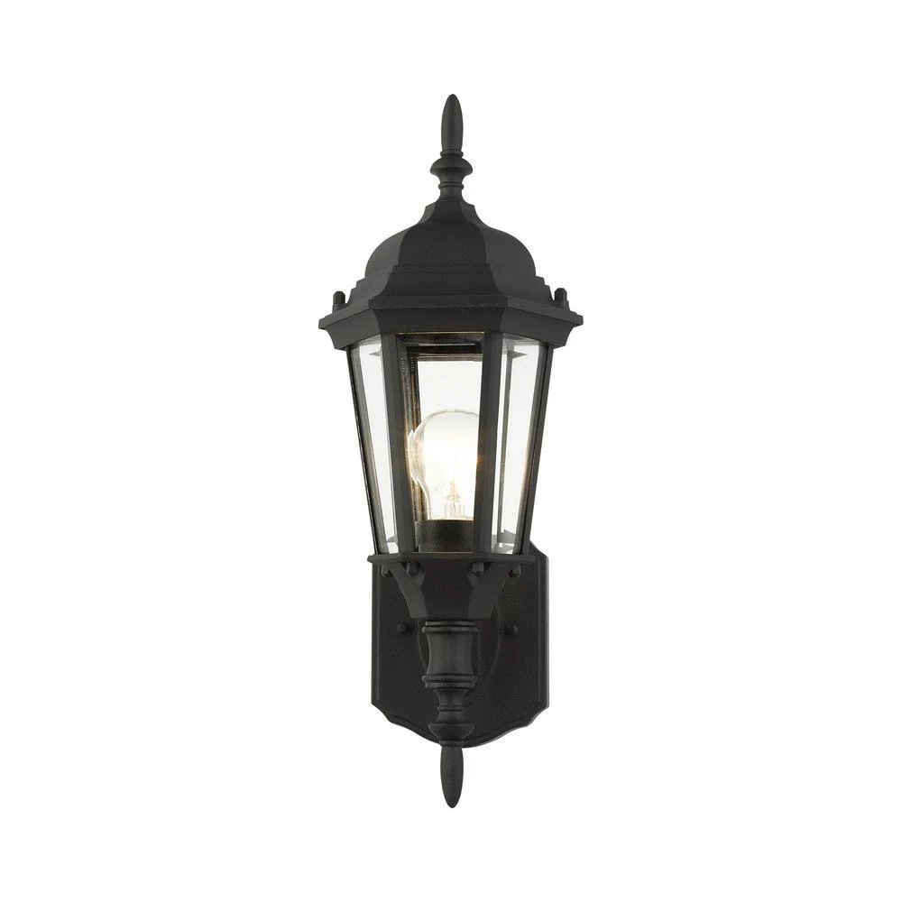 Livex Lighting is well known for quality, style and value. The elegant silhouette of the Hamilton collection is a classic that is sure to please even the most discriminating taste. This outdoor single-light upward facing mini wall lantern features a decorative top and arm which are paired with a simple six-sided frame in this textured black finish with clear beveled glass. Constructed of cast aluminum, this durable exterior fixture looks best in traditional or transitional outdoor settings. This well-rounded fixture is sure to satisfy your lighting needs.