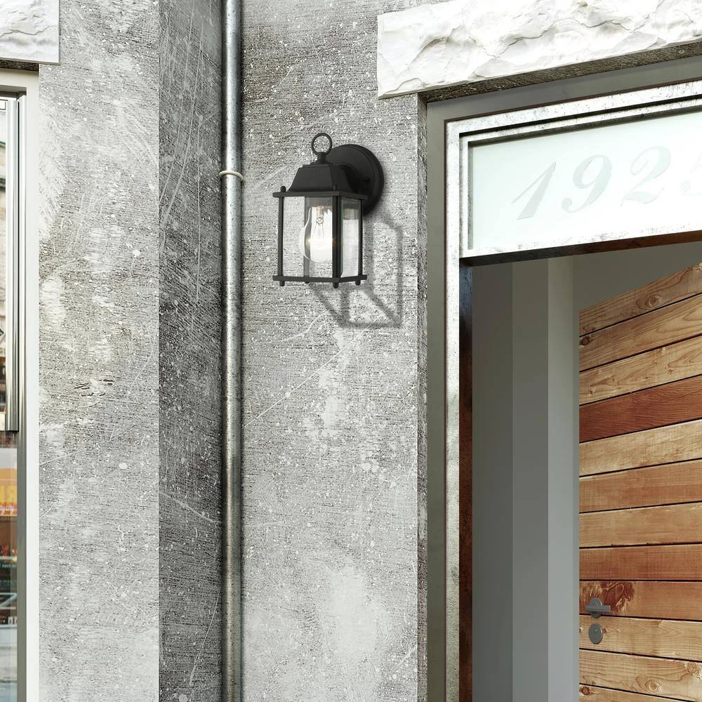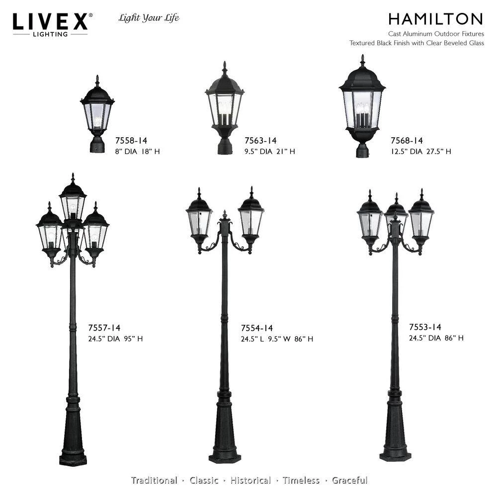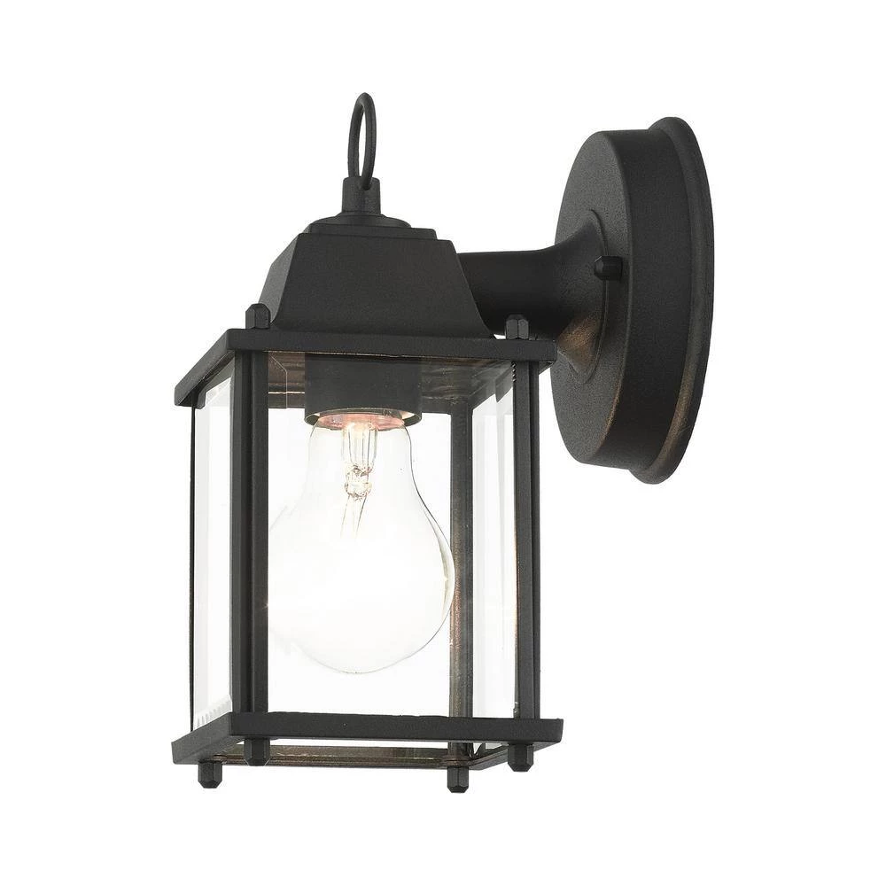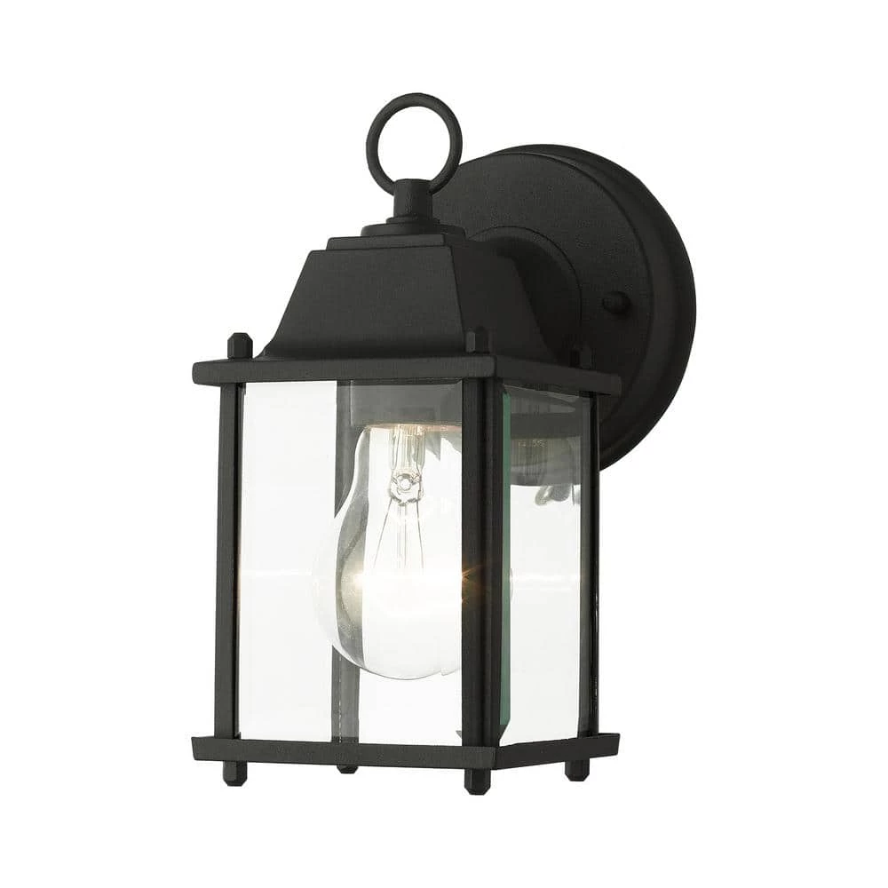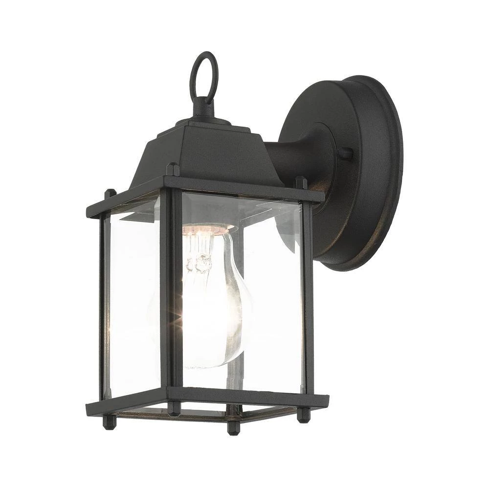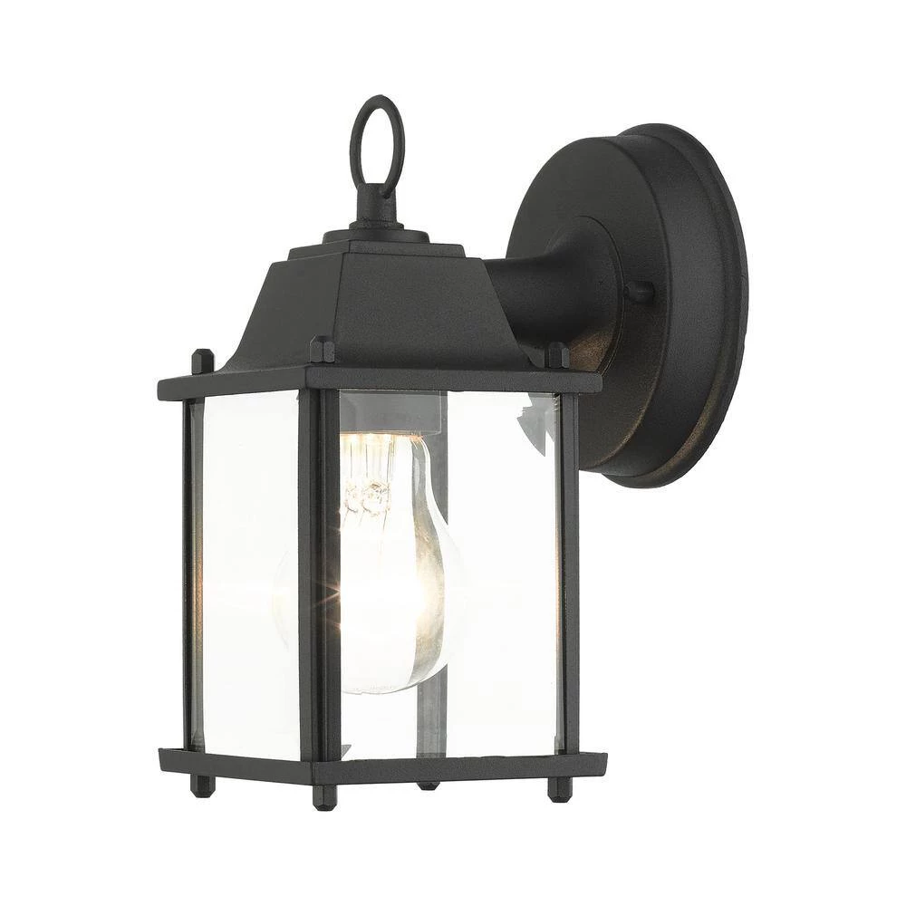 Livex Lighting is well known for quality, style and value. The elegant silhouette of the Hamilton collection is a classic that is sure to please even the most discriminating taste. This outdoor single light downward hanging wall lantern features a decorative top which is paired with a simple 4-sided frame in this textured black finish with clear beveled glass. Constructed of cast aluminum, this durable exterior fixture looks best in traditional or transitional outdoor settings. This well-rounded fixture is sure to satisfy your lighting needs.
