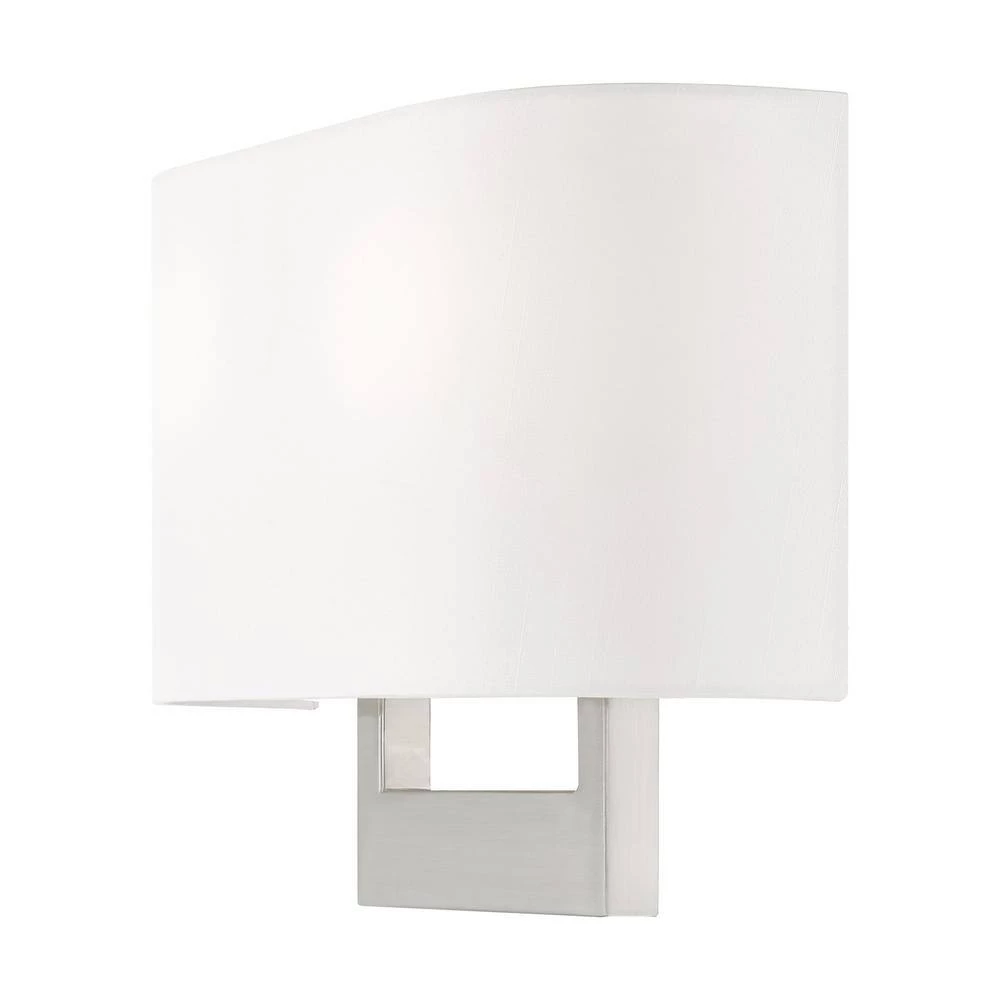 Raise the style bar with a designer wall sconce in a handsome and versatile contemporary manner. This 2-light wall sconce comes in a brushed nickel finish with a rectangular off-white fabric hardback shade. with the superb craftsmanship and affordable price this fixture is sure to tastefully indulge your extravagant side.