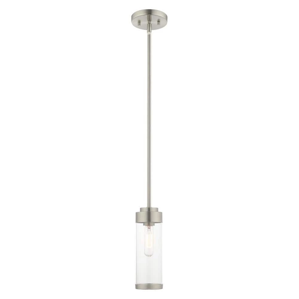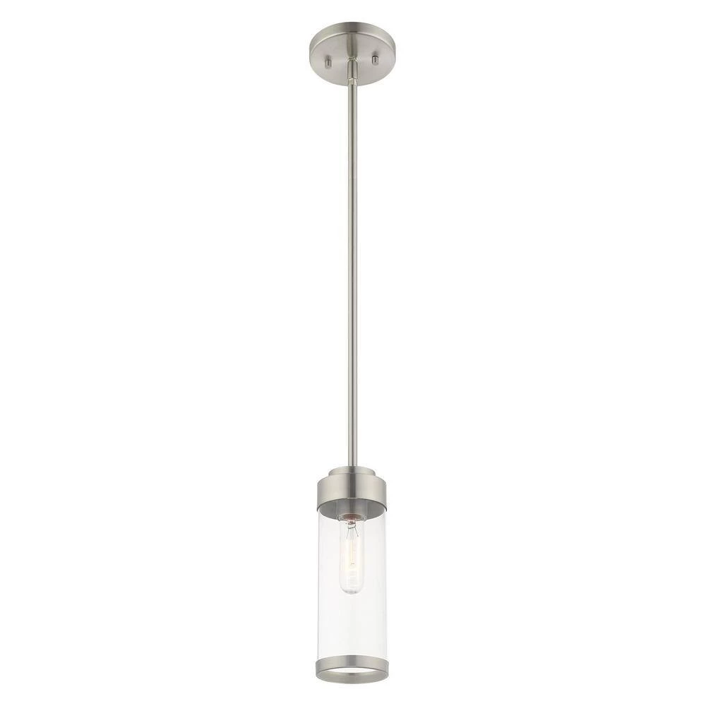 Livex Lighting is well known for quality, style and value. The one light mini pendant from the Hillcrest collection features a simple elegant brushed nickel frame paired with clear glass shades. Each shade is accented with a banded brushed nickel ring to carry through the theme of finely crafted metal fittings. This well-rounded fixture is sure to satisfy your lighting needs.