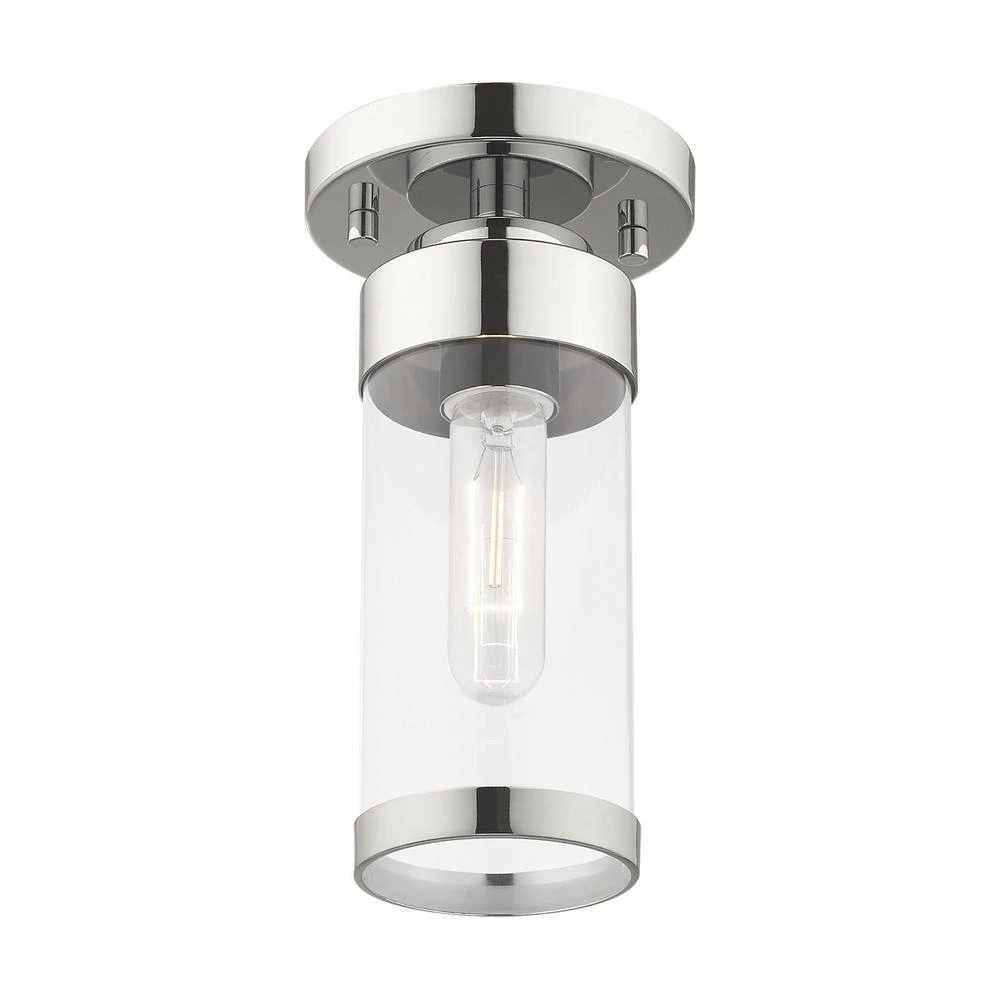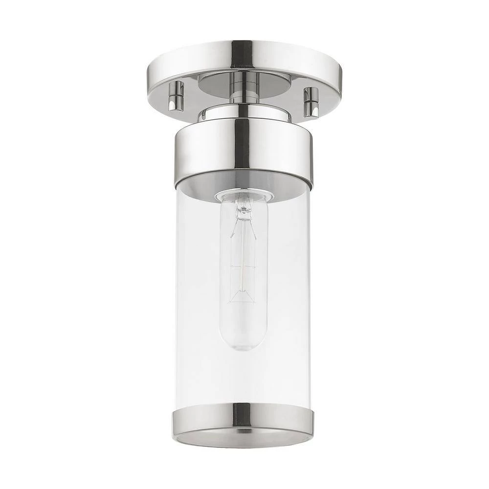 Livex Lighting is well known for quality, style and value. The one light ceiling mount from the Hillcrest collection features a simple elegant polished chrome frame paired with clear glass shades. Each shade is accented with a banded polished chrome ring to carry through the theme of finely crafted metal fittings. This well-rounded fixture is sure to satisfy your lighting needs.